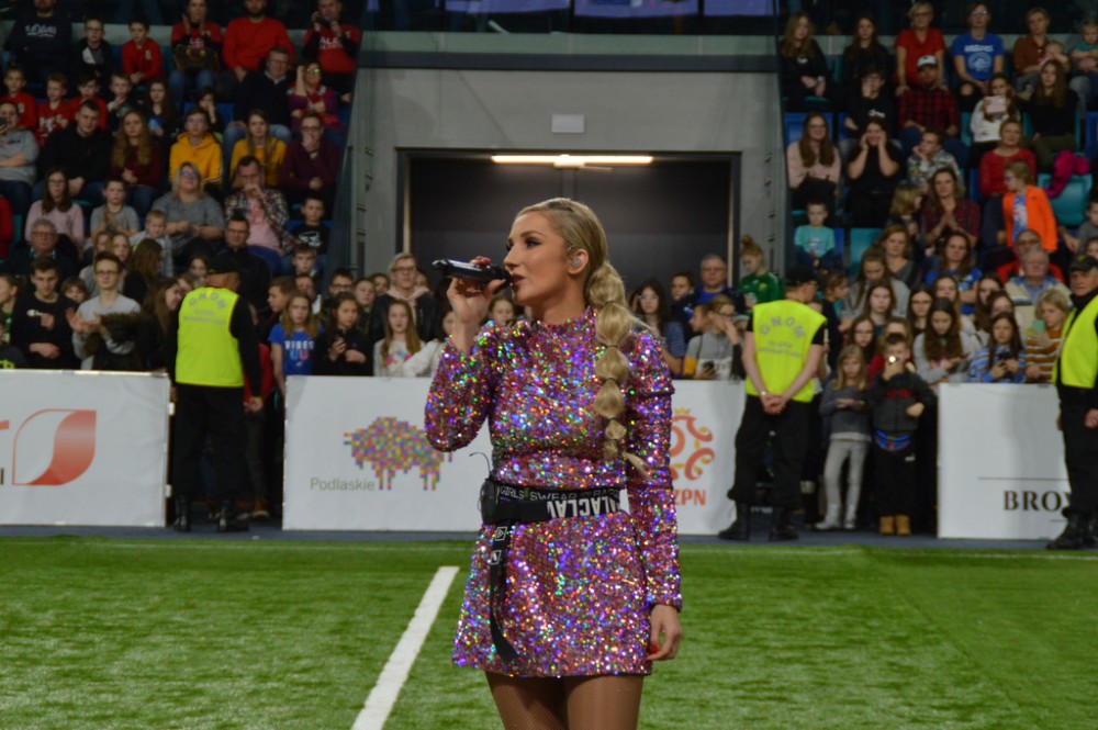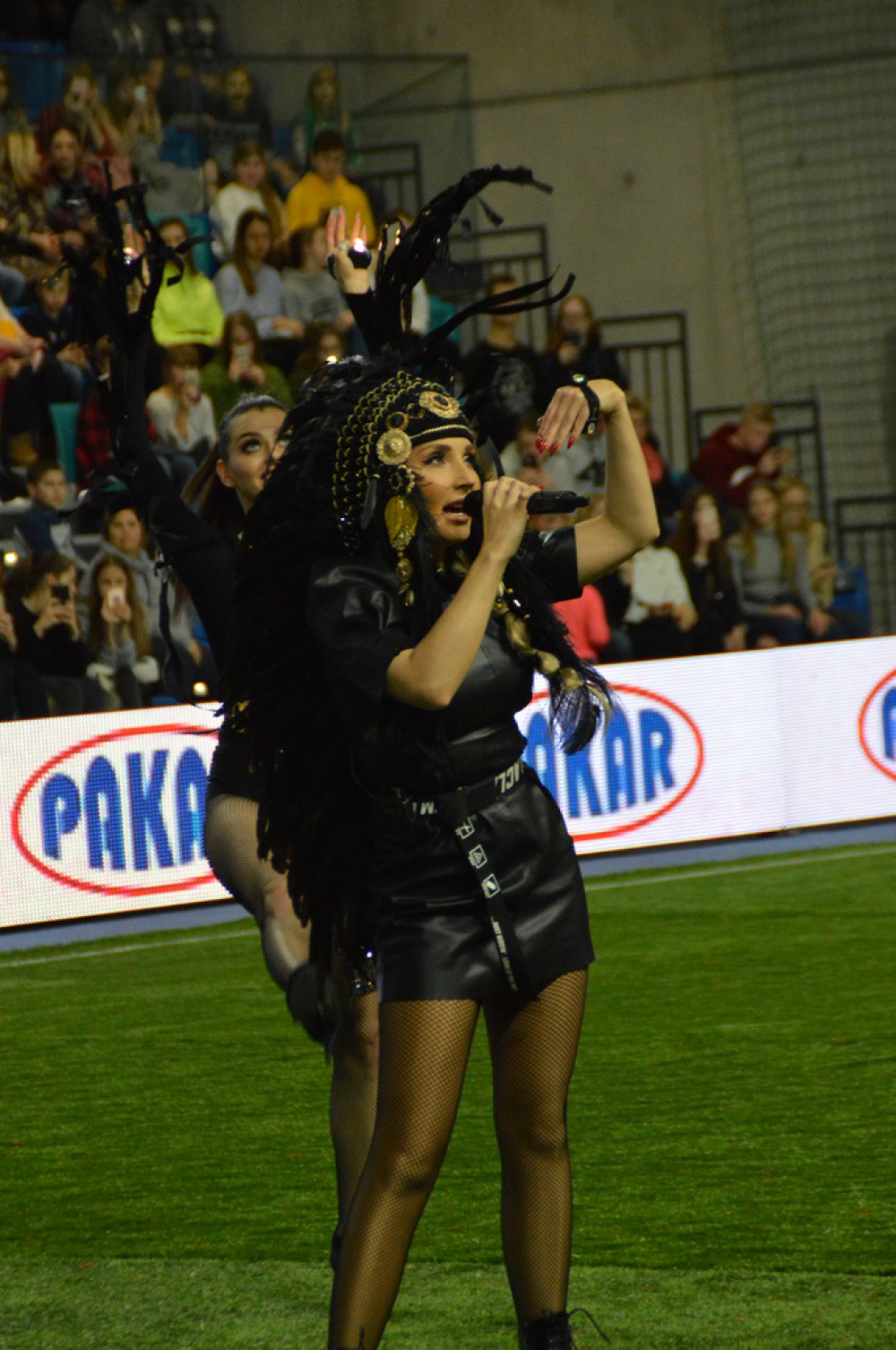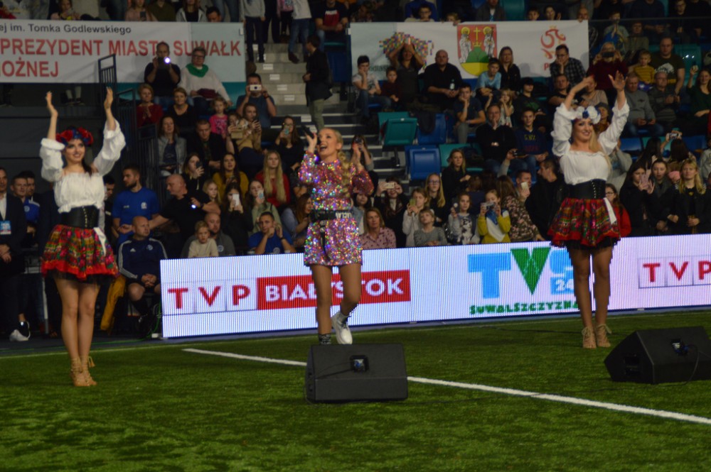 Jeszcze większa liczba widzów czekała w niedzielne popołudnie w Suwałki Arenie na koncert Cleo. Popularna piosenkarka zaśpiewała "Łowców Gwiazd" na rozpoczęcie, a "My Słowianie", "Dom" i "Za krokiem krok" zabrzmiały na początku jej koncertu. Cleo poprosiła aż trzech chlopców z Jagiellonii Białystok, by stanęli między słupkami i mimo to skutecznie wykonała rzut karny, kopnęła piłkę przy samym słupku.