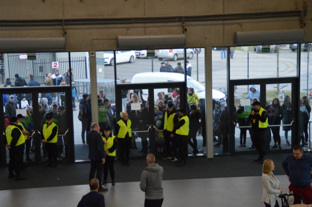 Przez kilka godzin przy wejściu do hali trwała swoista wymiana. Oczekujący zajmowali miejsca wychodzących.