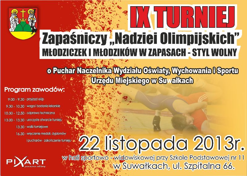 Aż 120 zawodniczek i zawodników wystartuje w piątek w Suwałkach w IX Turnieju Zapaśniczym "Nadziei Olimpijskich" Młodziczek i Młodzików.