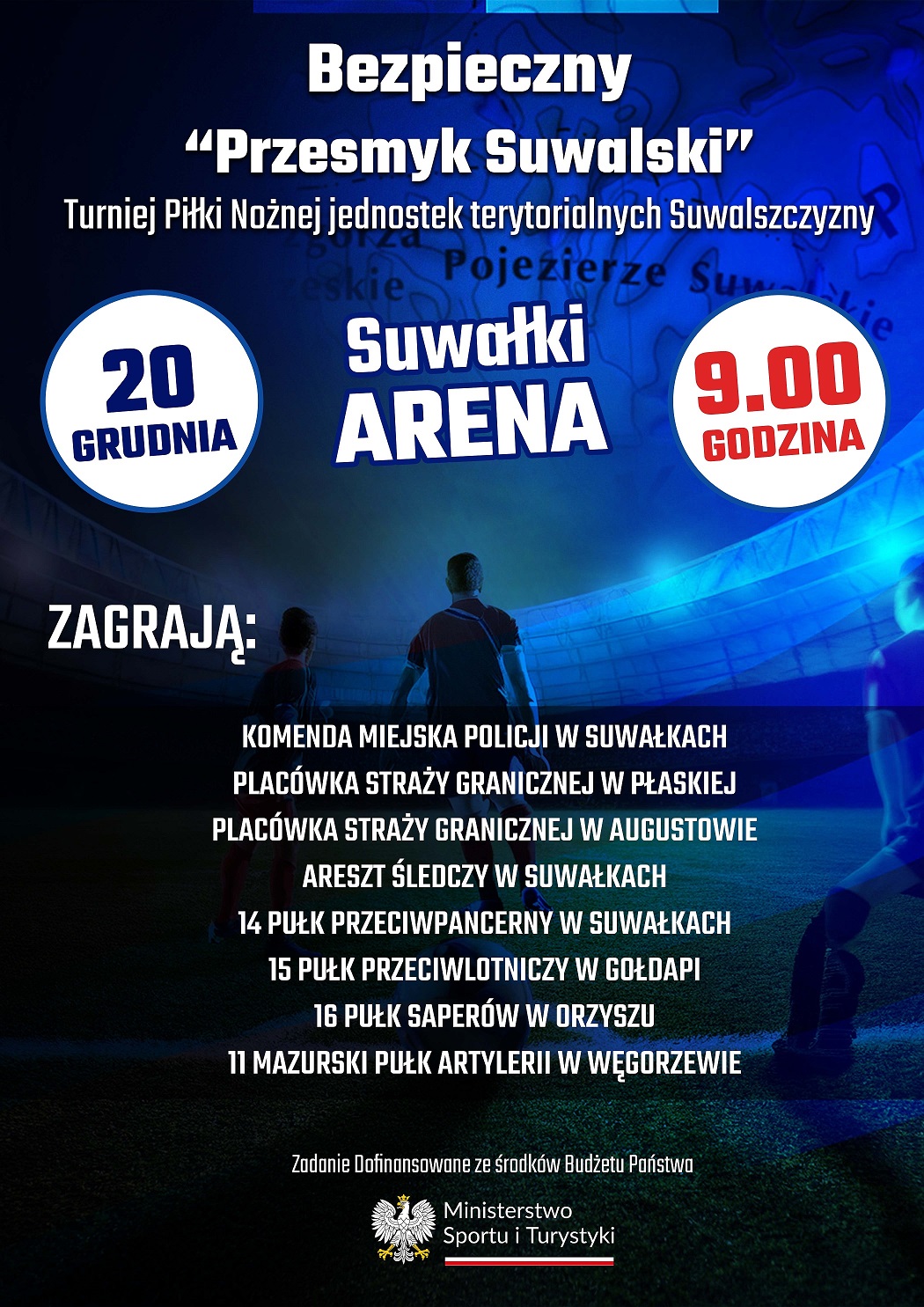 Turniej Piłki Nożnej "Bezpieczny Przesmyk Suwalski" jednostek mundurowych Suwalszczyzny to impreza skierowana do wszystkich odpowiedzialnych za bezpieczeństwo Państwa Polskiego.