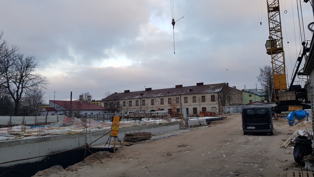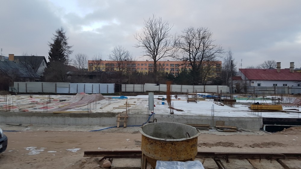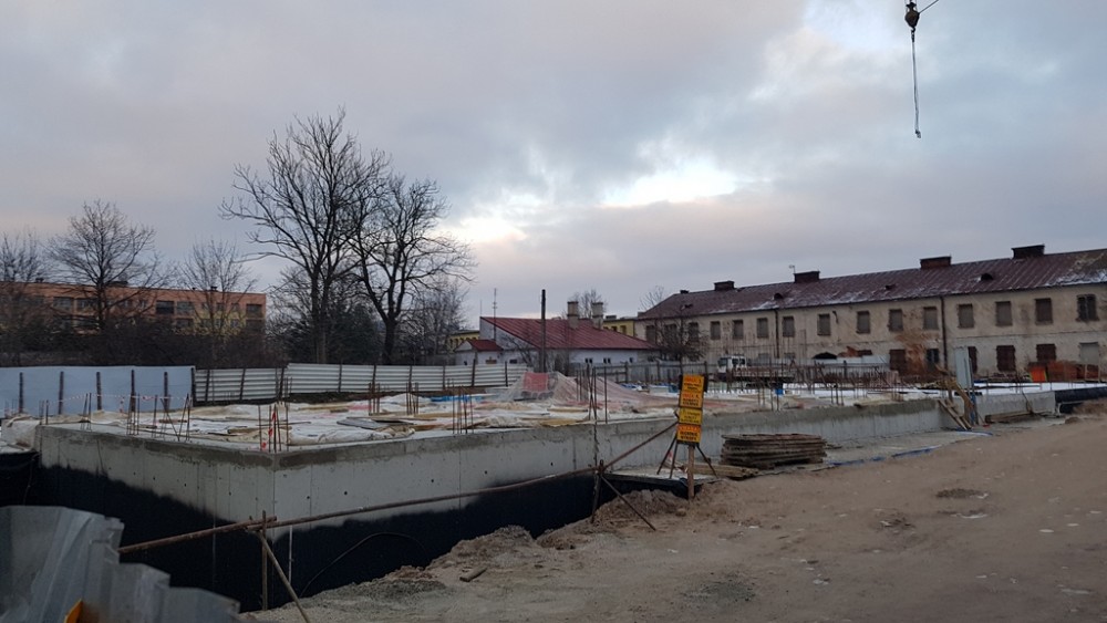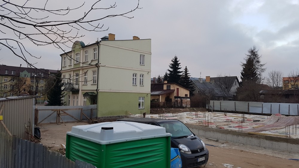 Budowa przy Ks. Jerzego Popiełuszki, bo taką nazwę radni nadali nowej uliczce, rozpoczęła się jesienią. Powstała już kondygnacja podziemna, w której przewidziano parking dla mieszkańców. Inwestycję realizuje ten sam augustowski deweloper, który wcześniej wybudował kamienicę z mieszkaniami o wysokim standardzie przy ul. Muzycznej.
