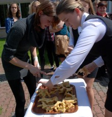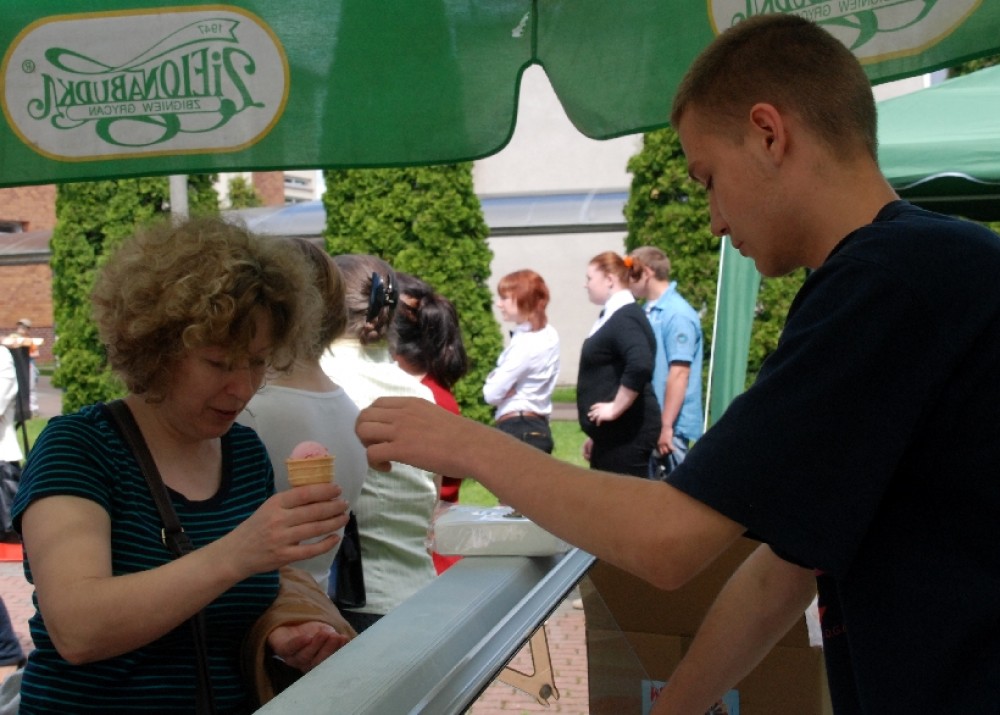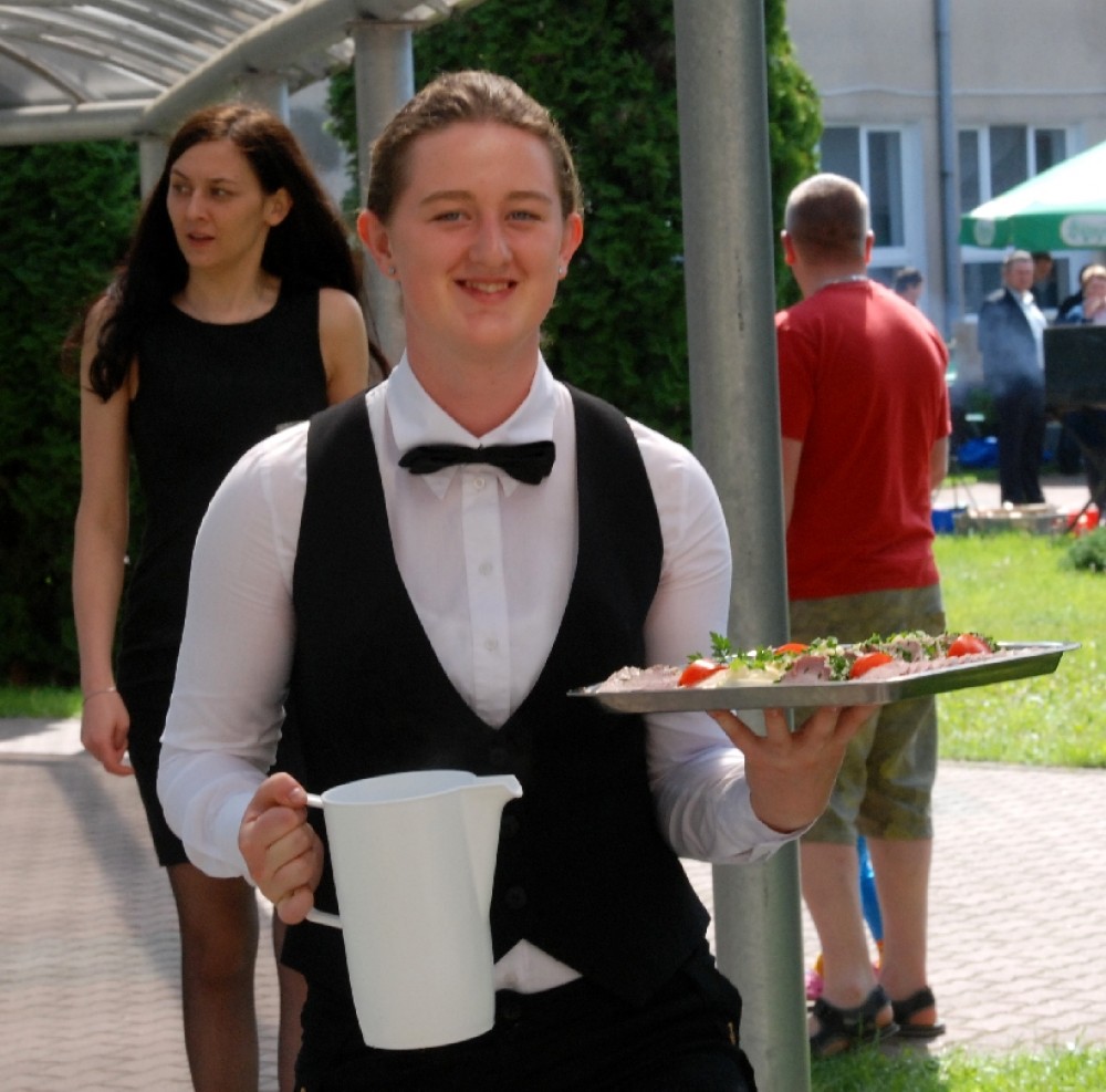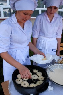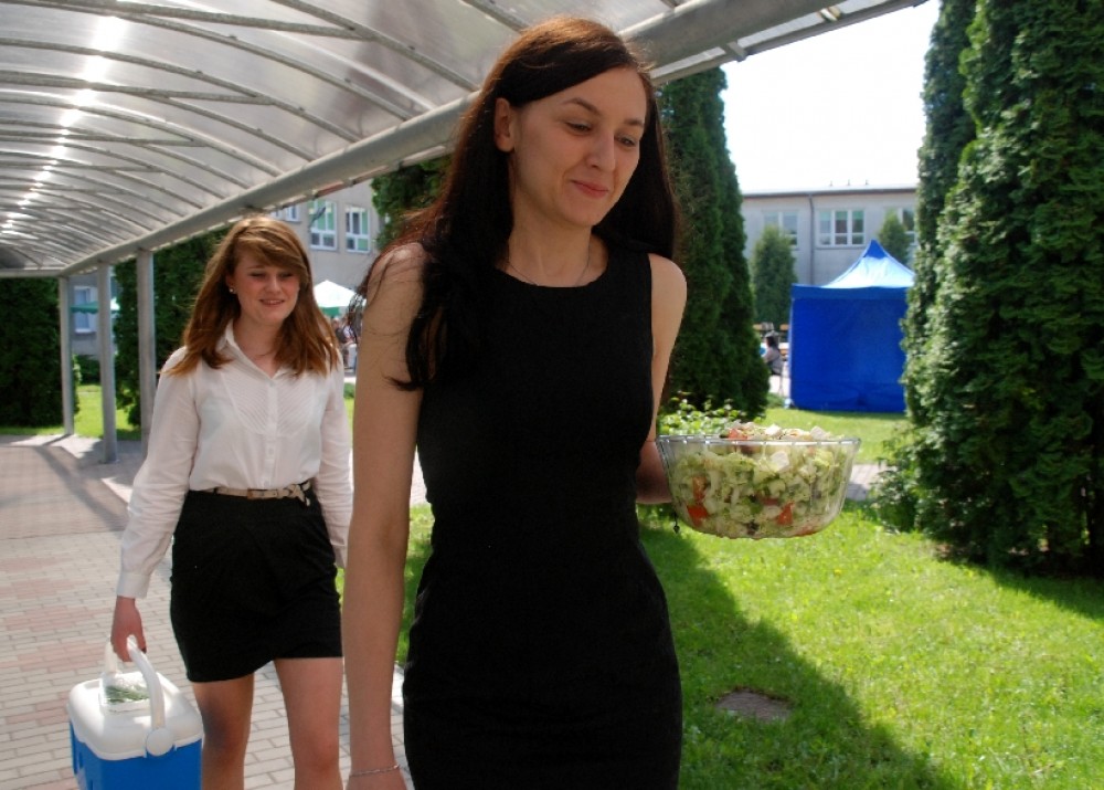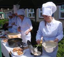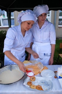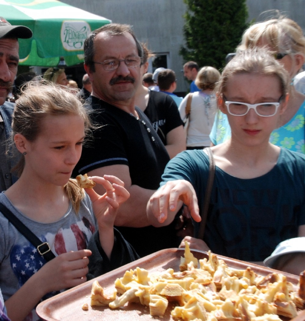 Umiejętności kulinarne zdobyte w pierwszym roku nauki pokazali uczniowie z klasy o żywienie i specjalności gospodarstwo domowe oferując pieczone na oczach widzów chrusty i obwarzanki z nadzieniem z jabłek. Pyszne, że palce lizać.