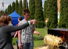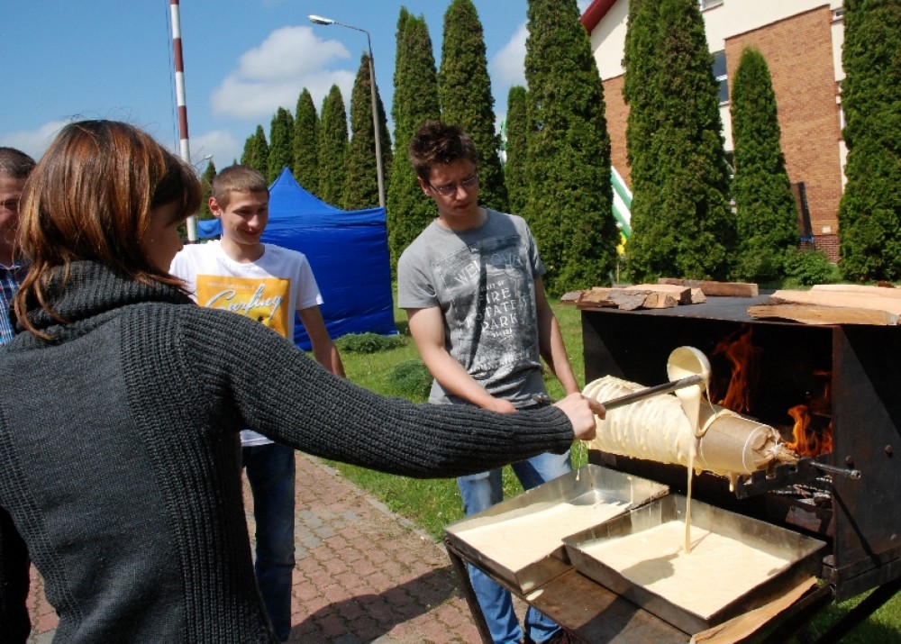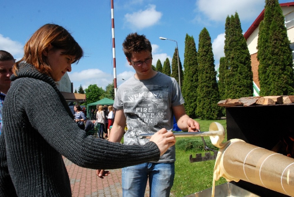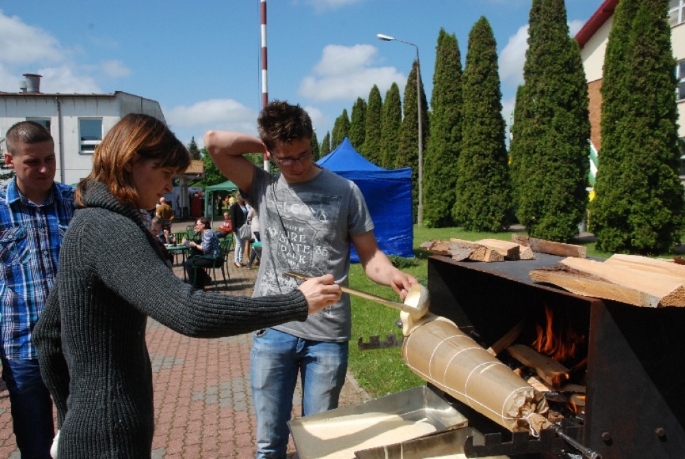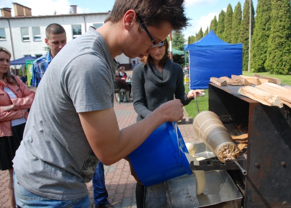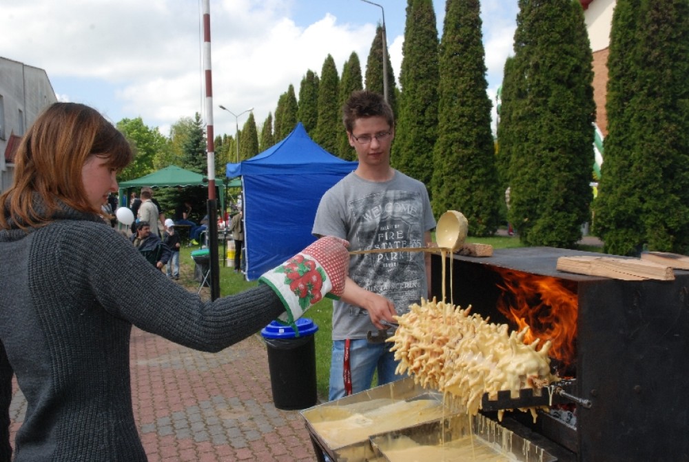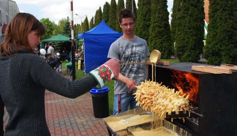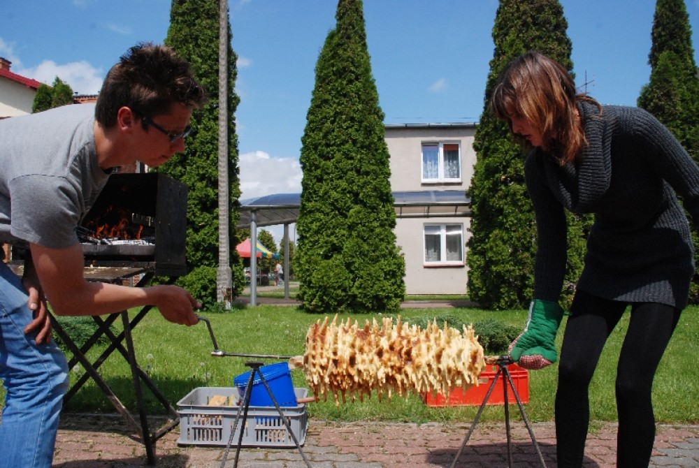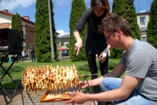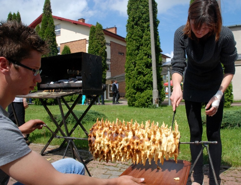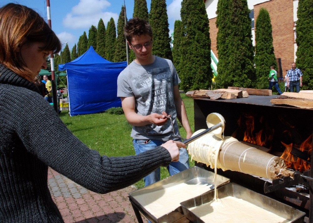 Podobnie jak sękacz pieczony tradycyjną metodą na oczach gości agrofestynu przez Sylwię Przekop i Mariusza Mikielskiego z Żytkiejm. Chociaż to ludzie bardzo młodzi, co widać na zdjęciach, to w pieczeniu sękaczy mają już kilkuletnie doświadczenie wyniesione z rodzinnych domów.