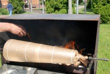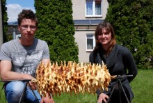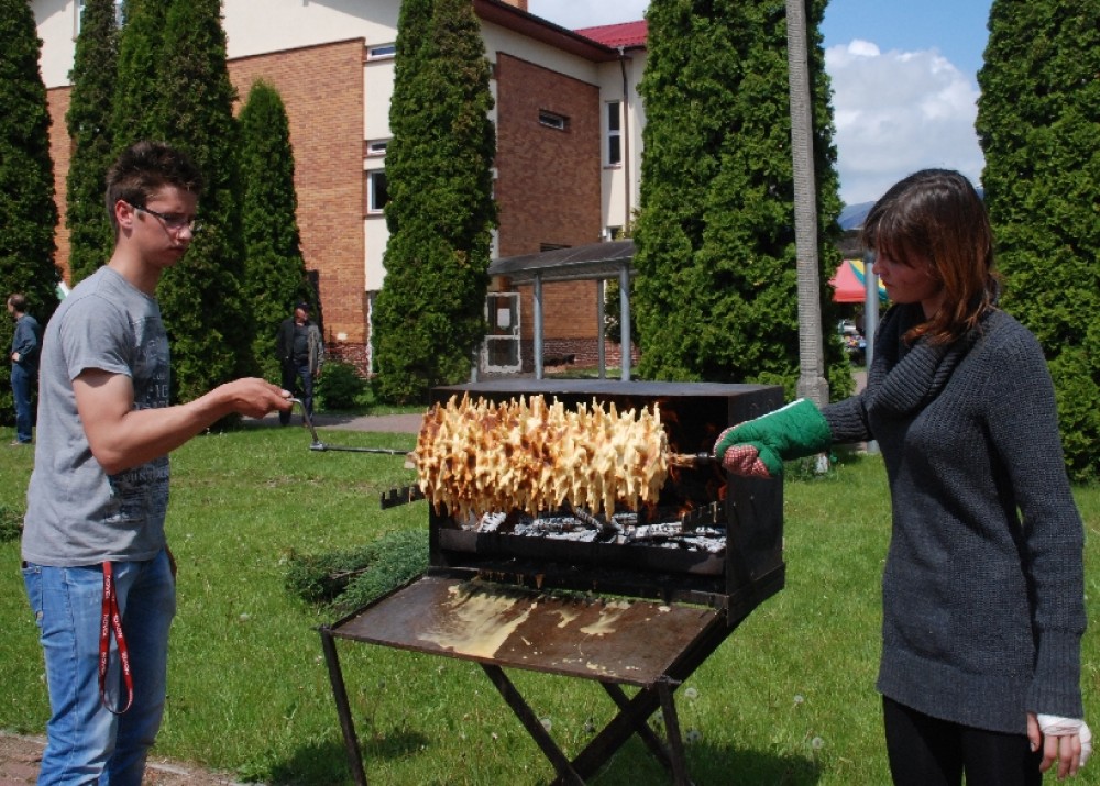 - O smaku sękacza, podobnie zresztą jak każdej innej potrawy, decydują nie tylko użyte składniki, ale też ilość serca włożonego przez kucharza czy piekarza - mówią Sylwia i Mariusz. – W tego sękacza włożyliśmy całe swoje serca i mamy nadzieję, że wyczują to nie tylko smakosze, ale wszyscy, których poczęstujemy. Wpływ na smak sękacza pieczonego metodą tradycyjną, czyli tak jak tu, na ogniu, ma jakość użytego drewna. Musi być z drzew liściastych: olchy czy brzozy, ale nie owocowych, bo te naturalny smak sękacza mieszają z zapachem owoców, a to się wyczuwa.