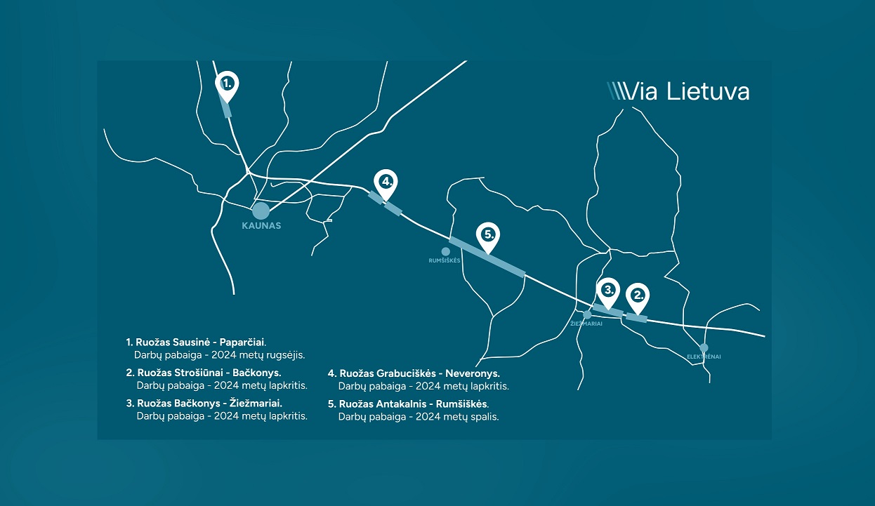 W połowie listopada planowane jest zakończenie ostatniego 3,9-kilometrowego odcinka z Žiežmarii w kierunku Elektrėnai. Najdłuższy – 10-kilometrowy odcinek z Antakalnis do Rumšiškii (z Wilna w stronę morza) – zostanie ukończony pod koniec października.