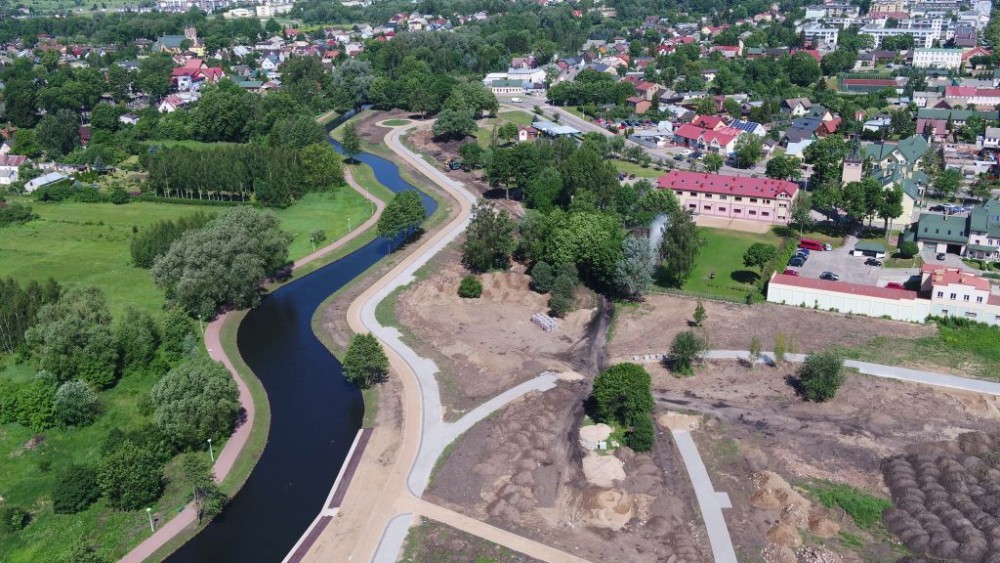 Coraz konkretniej prezentują się też bulwary nad Czarną Hańczą, można zobaczyć, jak będzie wyglądał pas startowy lokalnego lotniska.