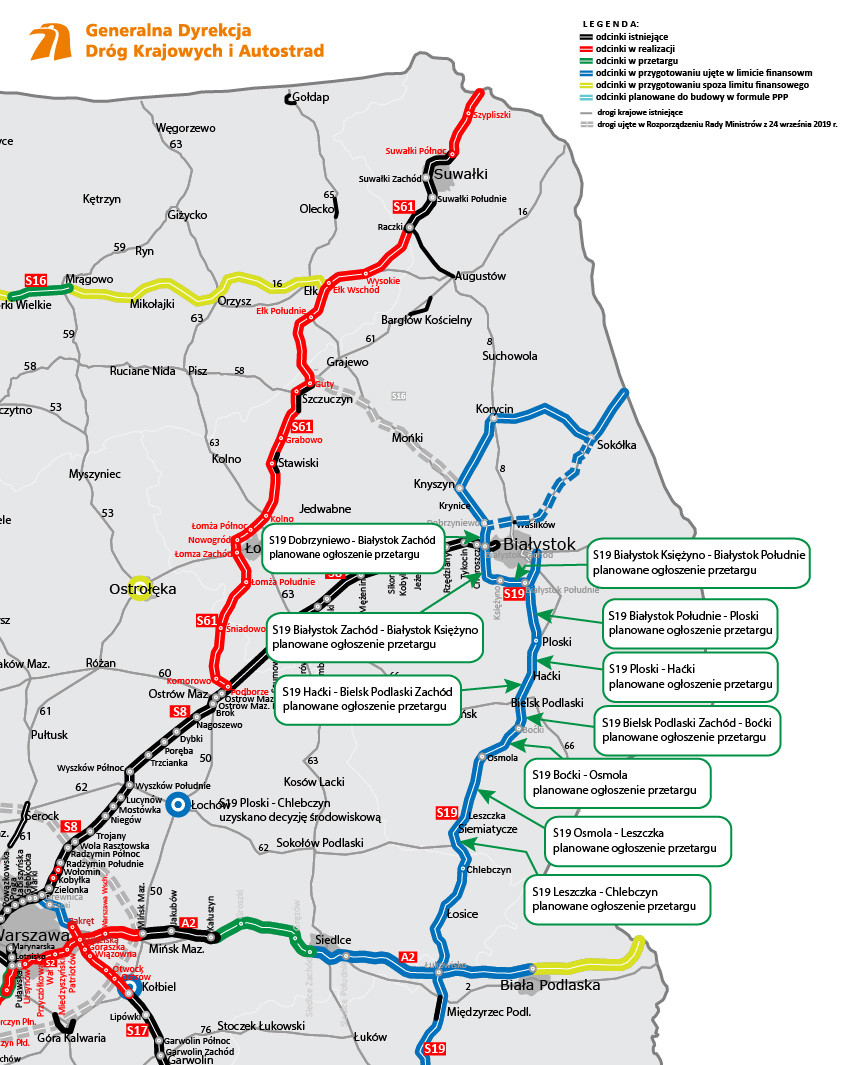 W I póÅ‚roczu 2020 roku planowane jest ogÅ‚oszenie przetargów na realizacjÄ™ prawie 50 km drogi ekspresowej S19 w okolicach BiaÅ‚egostoku: