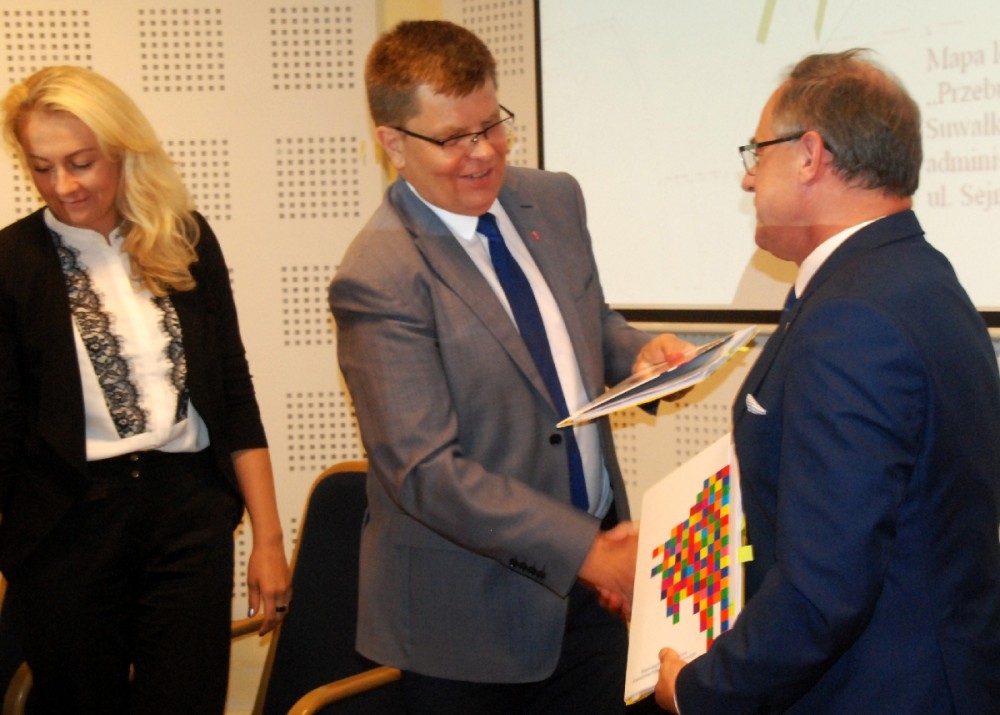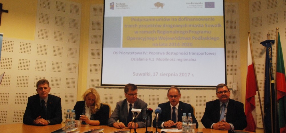 - Wartość tych trzech drogowych inwestycji, największa w historii miasta, to cztery miliony złotych więcej niż wydano łącznie na budowę aquaparku, Suwalskiego Ośrodka Kultury i modernizację stadionu miejskiego. To, 850 złotych w przeliczeniu na statystycznego mieszkańca miasta. To nasze pięć minut w przebudowie sieci transportowej w mieście i omijającej miasto. To od nas zależy czy i jak tę wielka szansę wykorzystamy – w czasie konferencji prasowej podczas podpisywania umowy mówił Czesław Renkiewicz, prezydent Suwałk, który podziękował władzom województwa za przychylność z jaką spojrzały na potrzeby modernizacji infrastruktury drogowej nad Czarną Hańczą.