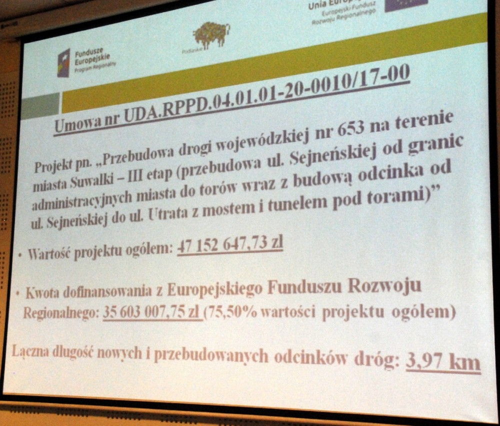 przebudowa drogi wojewódzkiej nr 653 na terenie miasta Suwałki – III etap (przebudowa ul. Sejneńskiej od granic administracyjnych miasta do torów wraz z budową odcinka od ul. Sejneńskiej do ul. Utrata z mostem i tunelem pod torami)