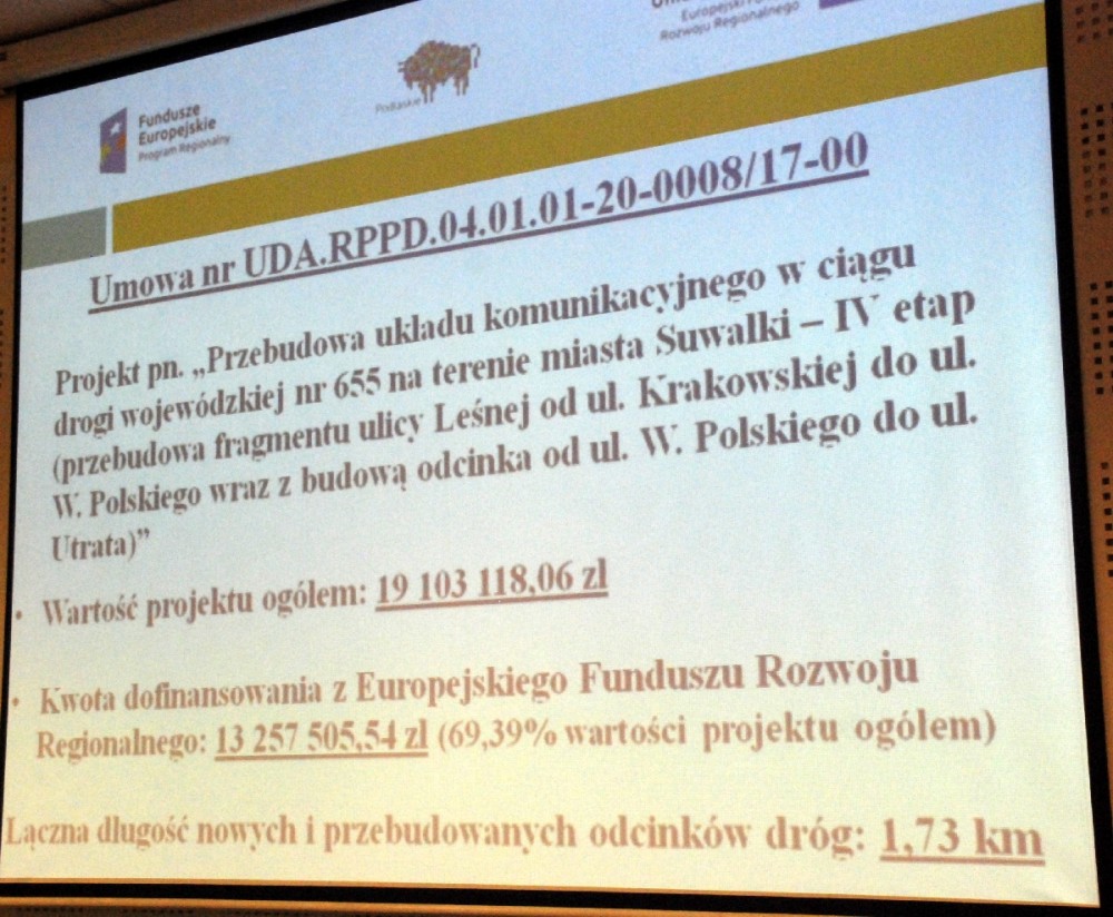 18. lipca br. Zarząd Województwa Podlaskiego podjął decyzję o dofinansowaniu z Regionalnego Programu Operacyjnego Województwa Podlaskiego kwotą ponad 59 mln zł trzech inwestycji drogowych w Suwałkach, których wartość przekracza 78 mln zł. 17 sierpnia władze miasta podpisały z władzami województwa porozumienie o finansowaniu inwestycji. Tego dnia wbito także symboliczną pierwszą łopatę pod przebudowę ulicy Leśniej.