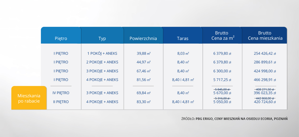 Czynnikiem, który w przeważajÄ…cej mierze decyduje o zakupie mieszkania jest cena. Koszt caÅ‚oÅ›ciowy dużych mieszkaÅ„ jest oczywiÅ›cie wyższy, jednak metr kwadratowy dużego mieszkania czÄ™sto jest zdecydowanie niższy aniżeli np. kawalerek. Różnice w cenach mieszkaÅ„ w zależnoÅ›ci od typu i metrażu przedstawia tabela.