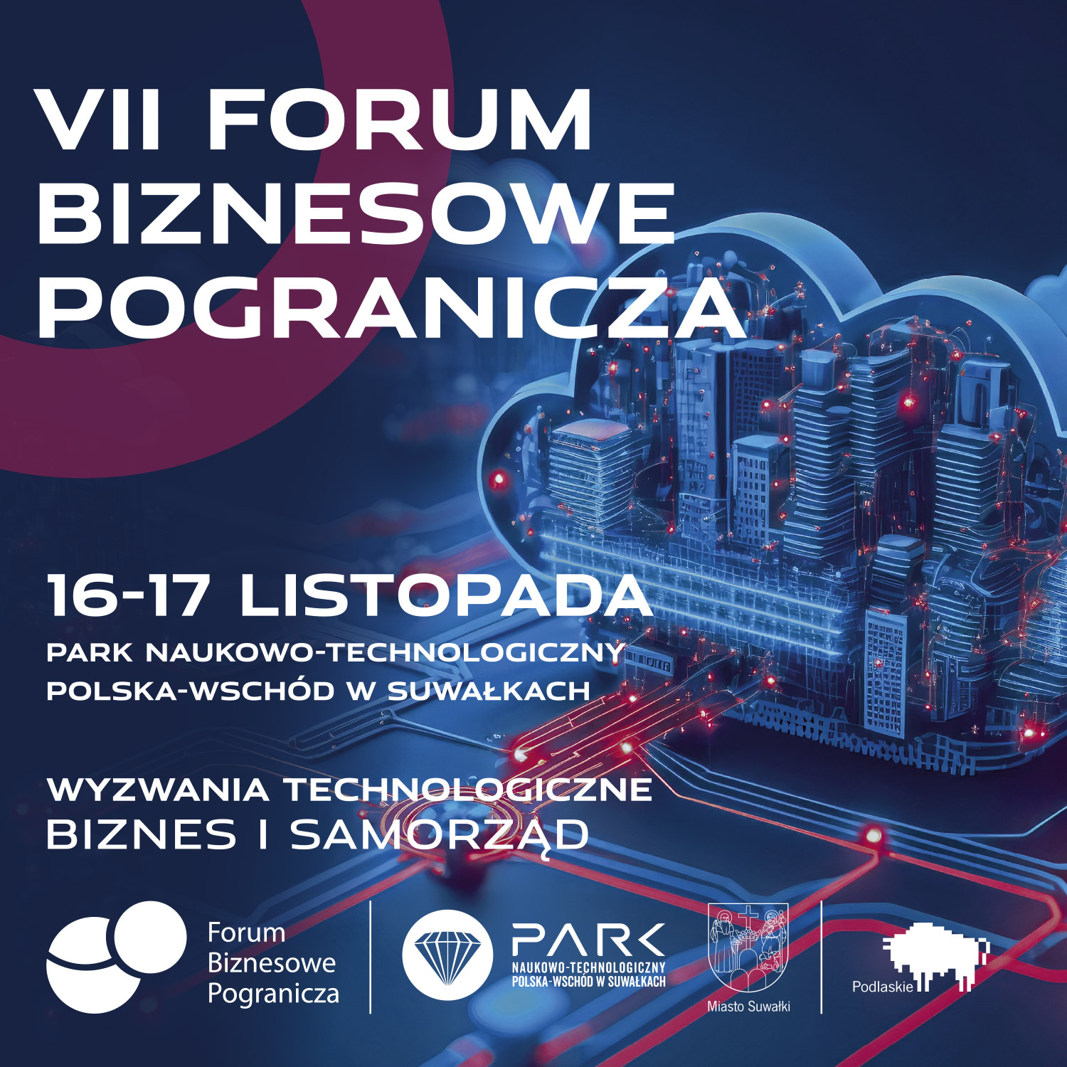 Współorganizatorem VII Forum Biznesowego Pogranicza „Wyzwania technologiczne – biznes i samorząd” jest Województwo Podlaskie. Partnerem głównym tegorocznego wydarzenia jest marka Mercedes Benz Auto Idea sp. z o.o. oraz Orange Polska. Wśród sponsorów i partnerów wydarzenia znajdują się również: Prognosis sp. z o.o – startup dostarczający innowacyjne oprogramowanie prognozujące zużycie oraz cenę energii elektrycznej. Producent mebli metalowych Malow, usługi transportowe Alsi Express International Transport, Forwarding & Logistics, dystrybutor innowacyjnych produktów i rozwiązań dla rolnictwa Superfarm, Agencja Rozwoju Regionalnego ARES S.A., Przedsiębiorstwo Wodociągów i Kanalizacji w Suwałkach sp. z o.o., Przedsiębiorstwo Gospodarowania Odpadami w Suwałkach sp. z o. o. oraz Przedsiębiorstwo Energetyki Cieplnej w Suwałkach sp. z o.o.