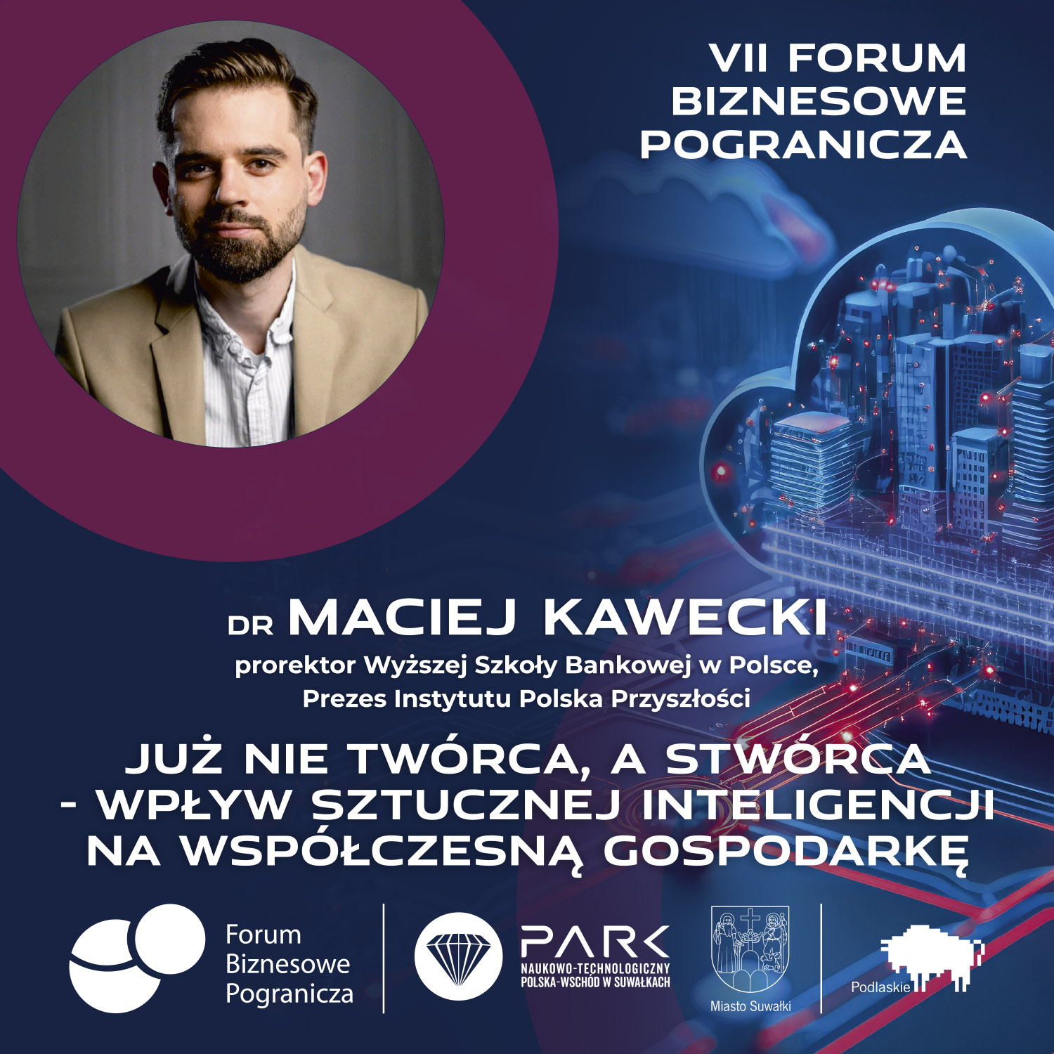 Dr Maciej Kawecki przybliży nam, jak AI wpływa na naszą gospodarkę i jakie nowe możliwości otwiera przez przedsiębiorstwami. Czy roboty i algorytmu mogą być rzeczywistymi twórcami nowych rozwiązań?