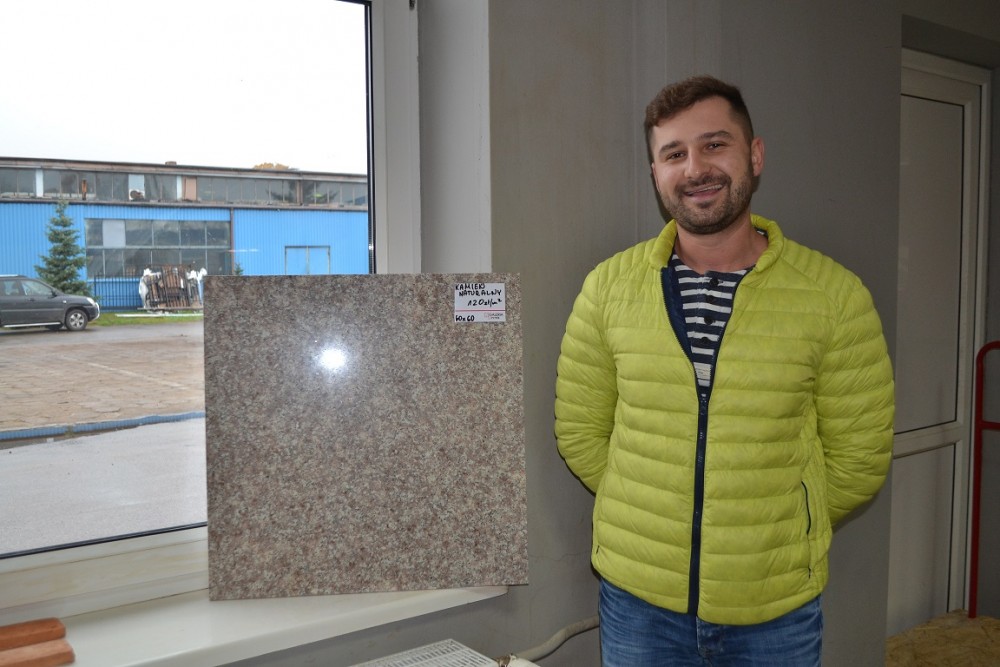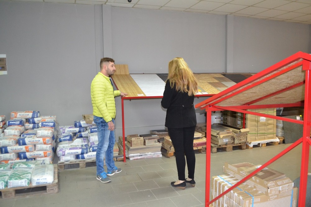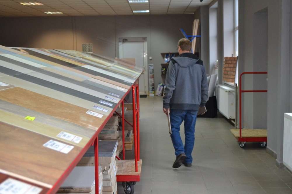 Kamil Gorlo jest wykwalifikowanym sprzedawcą z kilkuletnim doświadczeniem. Klientom służy radą: pomaga obliczyć, ile płytek trzeba na metr kwadratowy i dobrać odpowiedni rodzaj płytek do powierzchni.