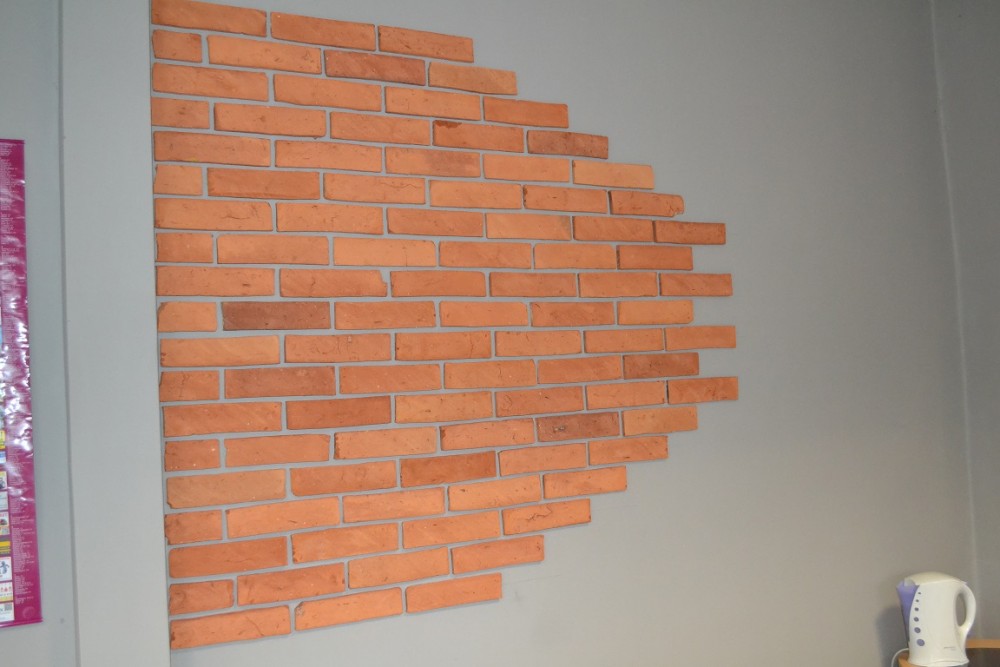 - Na Pomorzu cegłą powykÅ‚adane sÄ… praktycznie wszystkie pomieszczenia. Panuje tam na to moda. Cegłę zbiera siÄ™ z rozbieranych budynków, przecina maszynowo na plastry i można jÄ… swobodnie przyklejać do Å›ciany jak pÅ‚ytki – tÅ‚umaczy Kamil Gorlo.