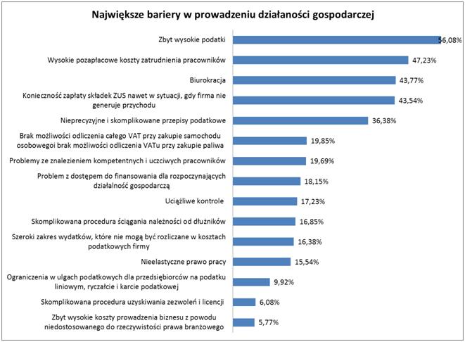 W badaniu wziÄ™li udziaÅ‚ mikroprzedsiÄ™biorcy, wÅ‚aÅ›ciciele jednoosobowych firm. Okazuje siÄ™, iż majÄ… oni wrażenie, iż po prawie 25 latach transformacji, nadal sÄ… traktowani jak w PRL-u., wynika z ankiety, w której spytano o gÅ‚ówne przeszkody w prowadzeniu biznesu. PrzedsiÄ™biorcy wymieniajÄ… aż 14 raf, o które potykajÄ… siÄ™ każdego dnia. Do najważniejszych zaliczajÄ… nierozwiÄ…zany problem olbrzymiej i wszechwÅ‚adnej biurokracji, rosnÄ…ce coraz bardziej podatki, olbrzymie koszty pracy. No i te nieustajÄ…ce kontrole i galopadÄ™ zmieniajÄ…cych siÄ™ przepisów.