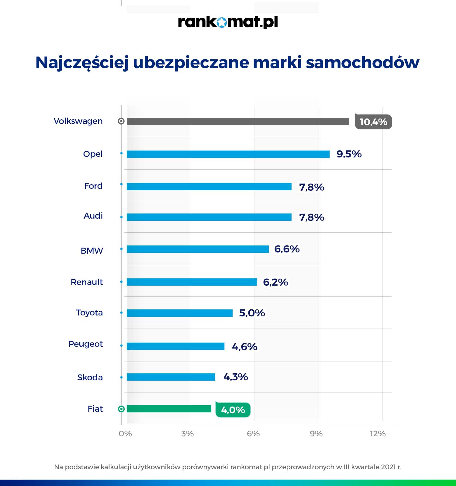 Na polskich drogach od lat królujÄ… Volkswageny, Ople, Fordy i Audi. Od lipca do wrzeÅ›nia 2021 roku aż 35,5% wÅ‚aÅ›cicieli takich pojazdów szukaÅ‚o najtaÅ„szego OC w porównywarce rankomat.pl.