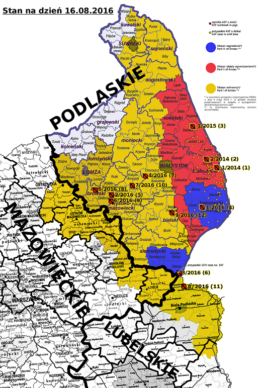 Od lutego 2014 roku w Polsce wykryto 12 ognisk wirusa Afrykańskiego Pomoru Świń. Ponad połowę z nich w sierpniu. Wirus nie jest niebezpieczny dla ludzi, ale powoduje masowe padanie zwierząt i uniemożliwia eksportowanie mięsa za granicę. Przynosi więc olbrzymie straty dla gospodarki.