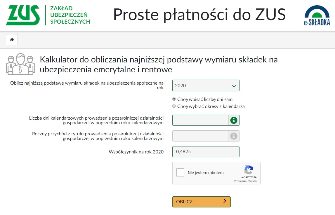 Zakład Ubezpieczeń Społecznych udostępnił na stronie internetowej eSkladka.pl. specjalny kalkulator, który pomoże drobnym przedsiębiorcom obliczyć podstawę wymiaru składek za styczeń 2020 roku. Dzięki temu prowadzący niewielkie biznesy sprawdzą, czy mogą skorzystać z „małego ZUS”.