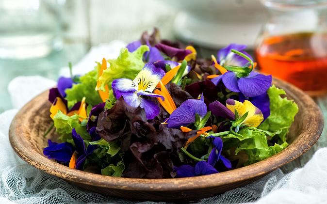 SaÅ‚ata z letnich liÅ›ci saÅ‚at i kwiatów z ostrym dressingiem