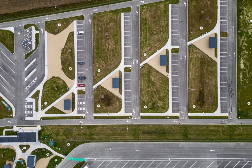 - 354 miejsca parkingowe - dla samochodów osobowych, ciężarowych, autobusów, kamperów, samochodów elektrycznych