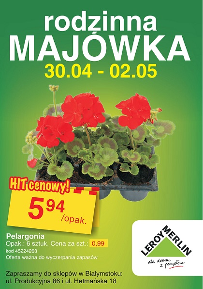 Z okazji zbliżajÄ…cego siÄ™ dÅ‚ugiego, majowego weekendu market zaprasza do skorzystania ze specjalnych promocji do dwóch sklepów w BiaÅ‚ymstoku – przy ul. HetmaÅ„skiej 18 i Produkcyjnej 86.