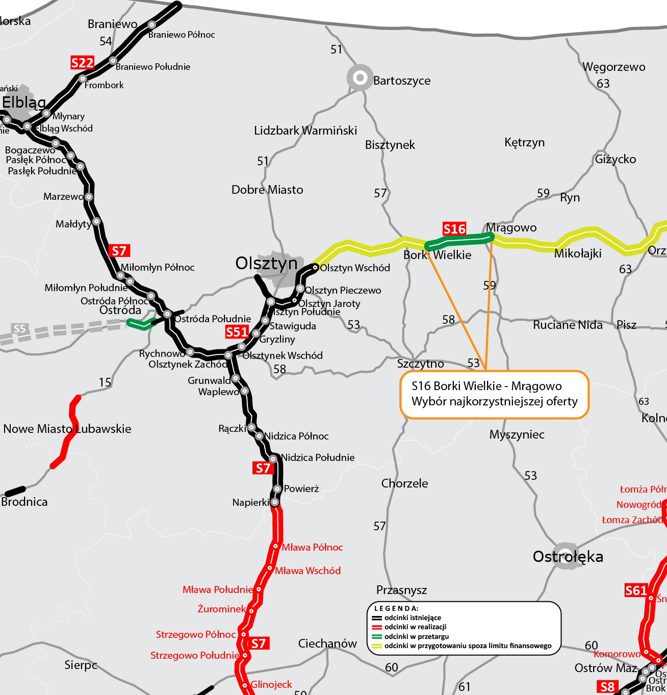 GDDKiA planuje budowÄ™ nowej trasy S16 z MrÄ…gowa do EÅ‚ku. W tej sprawie toczy siÄ™ nawet postÄ™powanie przetargowe, które ma wyÅ‚onić projektanta dla budowy 74-kilometrowego odcinka drogi przecinajÄ…cej sam Å›rodek Mazur. Projekt wywoÅ‚uje wiele emocji i różnych uwag, wniosków samorzÄ…dów, organizacji ekologicznych.