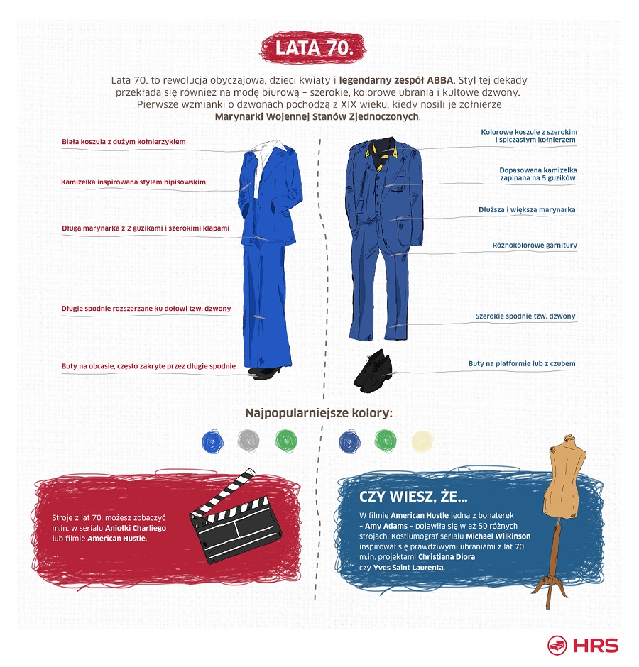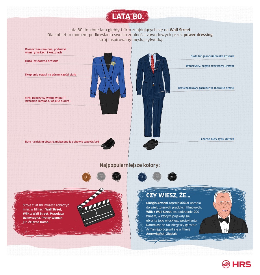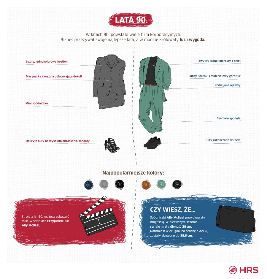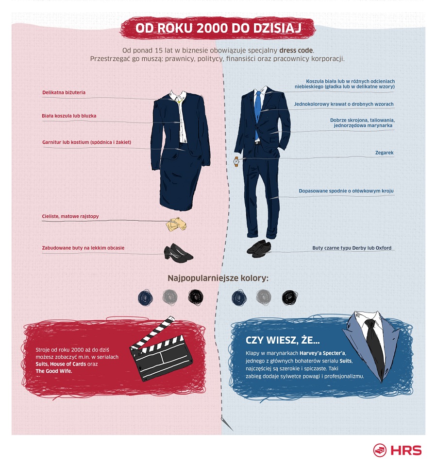 Strój biznesowy, który obowiÄ…zuje obecnie, przez minione lata przechodziÅ‚ ogromne przeobrażenia. JeÅ›li ciekawi CiÄ™, jak ubierano siÄ™ do pracy w latach 30., 60. czy 80. sprawdź przygotowanÄ… przez HRS infografikÄ™ „Strój biznesowy. Jak zmieniaÅ‚ siÄ™ na przestrzeni ostatnich 100 lat?” tutaj.