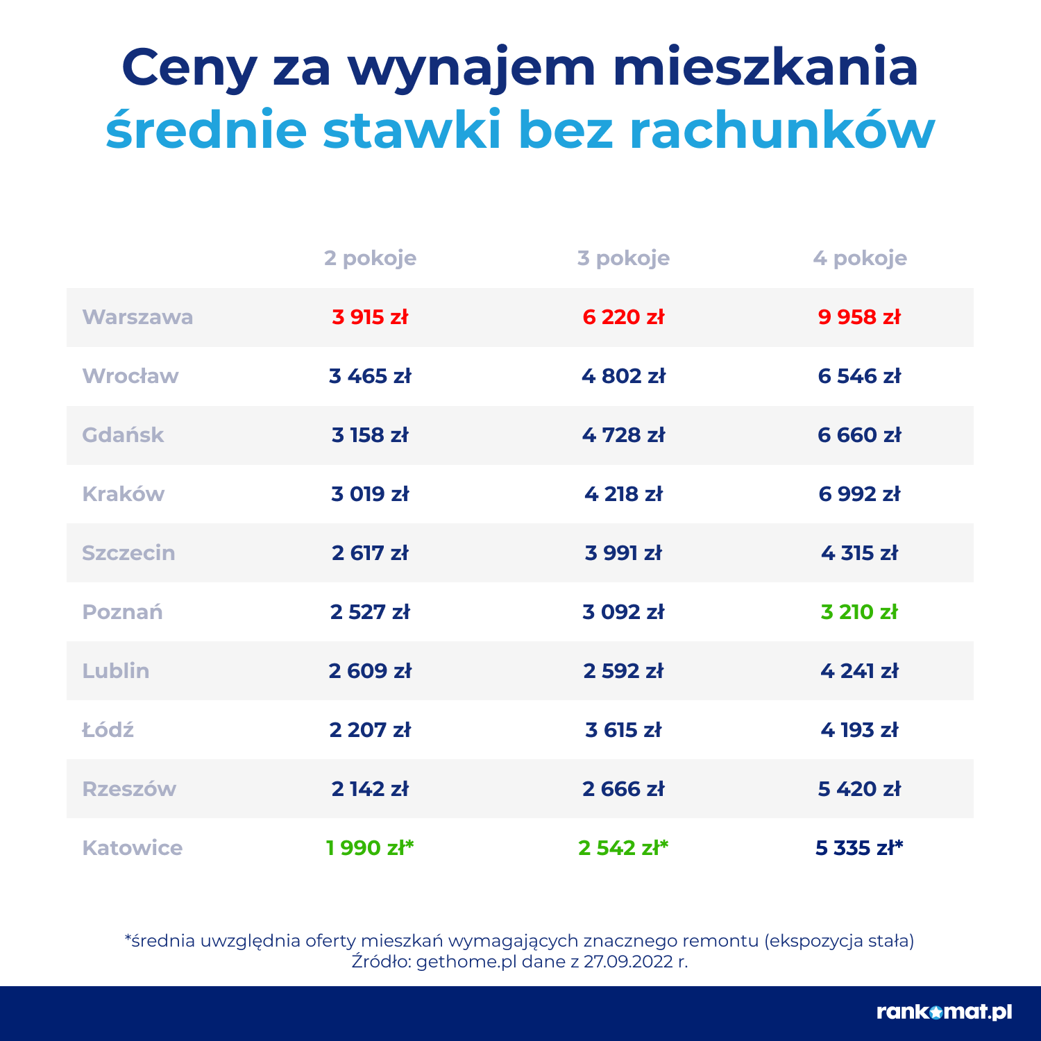 W porównaniu znalazło się 10 miast – Warszawa, Kraków, Poznań, Wrocław, Łódź, Gdańsk, Lublin, Katowice, Rzeszów i Szczecin. Dokładnie taka jest kolejność - według raportu Polskiego Instytutu Ekonomicznego „Akademickość polskich miast” - miejscowości o największej liczbie studentów. Jednak pod względem cen zakwaterowania w pokojach i mieszkaniach zestawienie mocno odbiega od pierwowzoru.