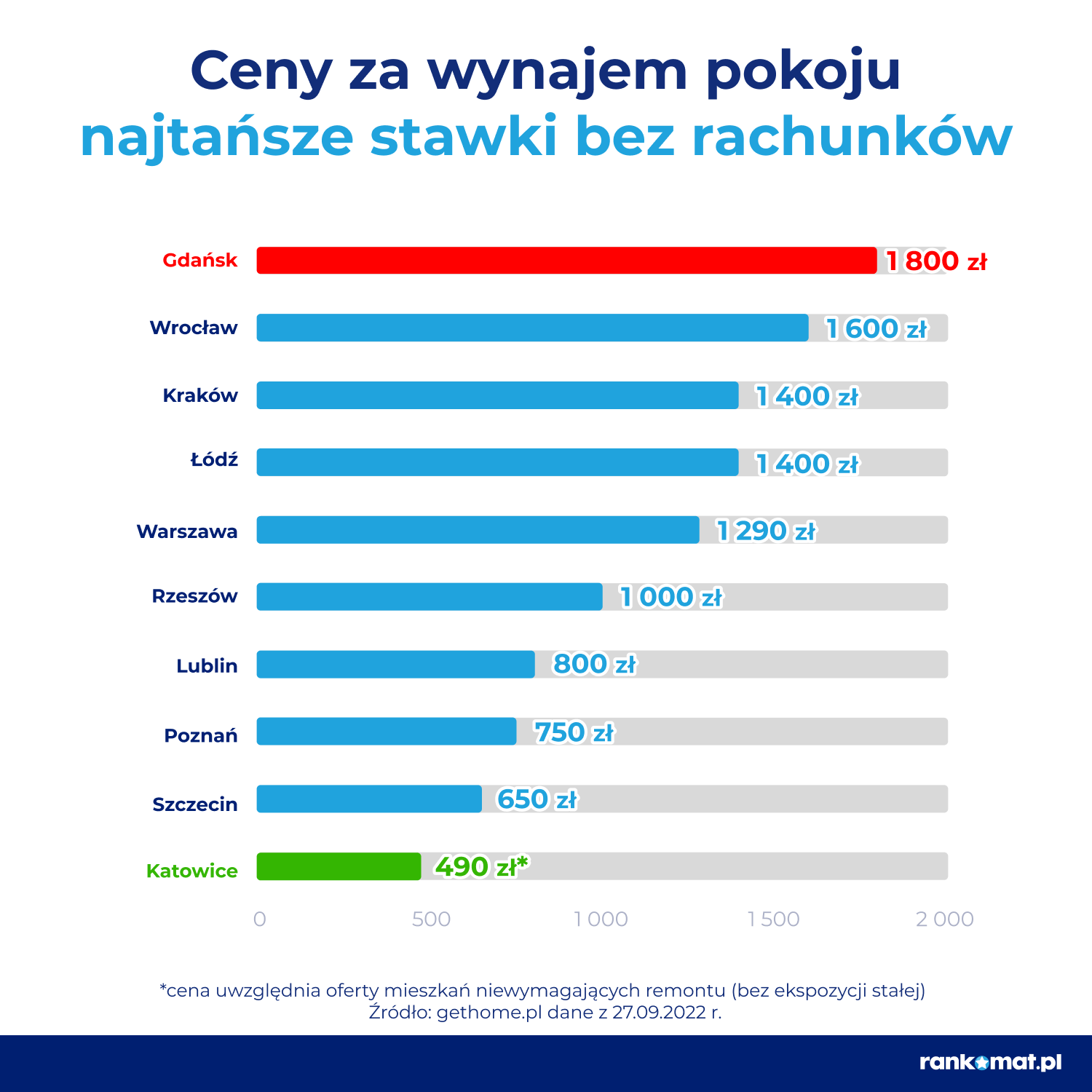 Studenci, którzy nie dostali miejsca w akademiku lub nie chcą w nim mieszkać, a kawalerka jest dla nich za droga, mogą znaleźć pokój w mieszkaniu. Najniższe stawki również są dość zróżnicowane – od 490 zł miesięcznie w Katowicach do co najmniej 1800 zł w Gdańsku.