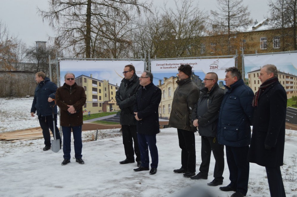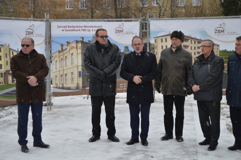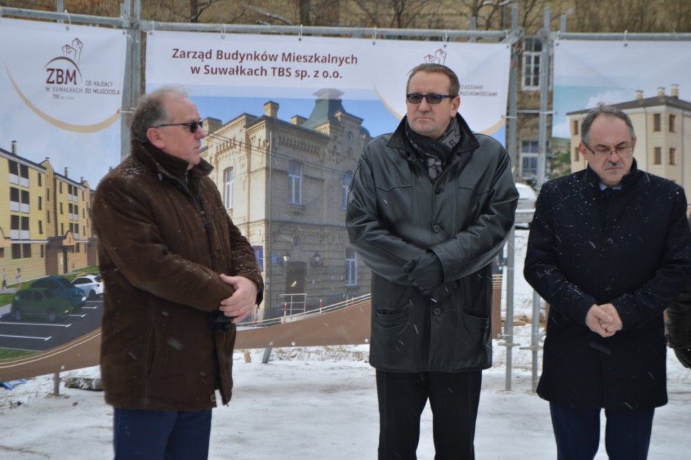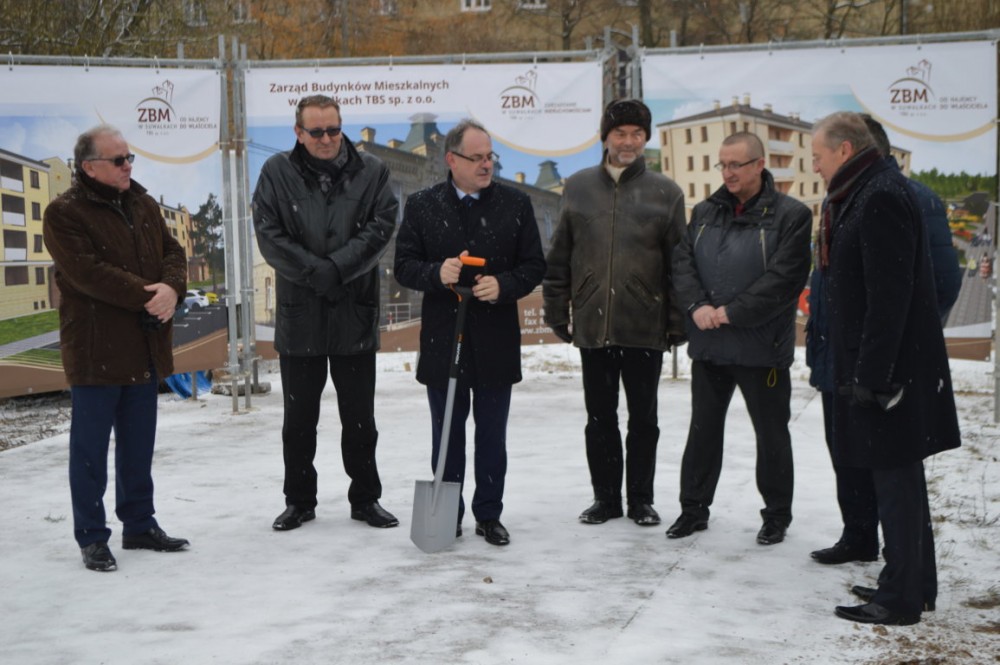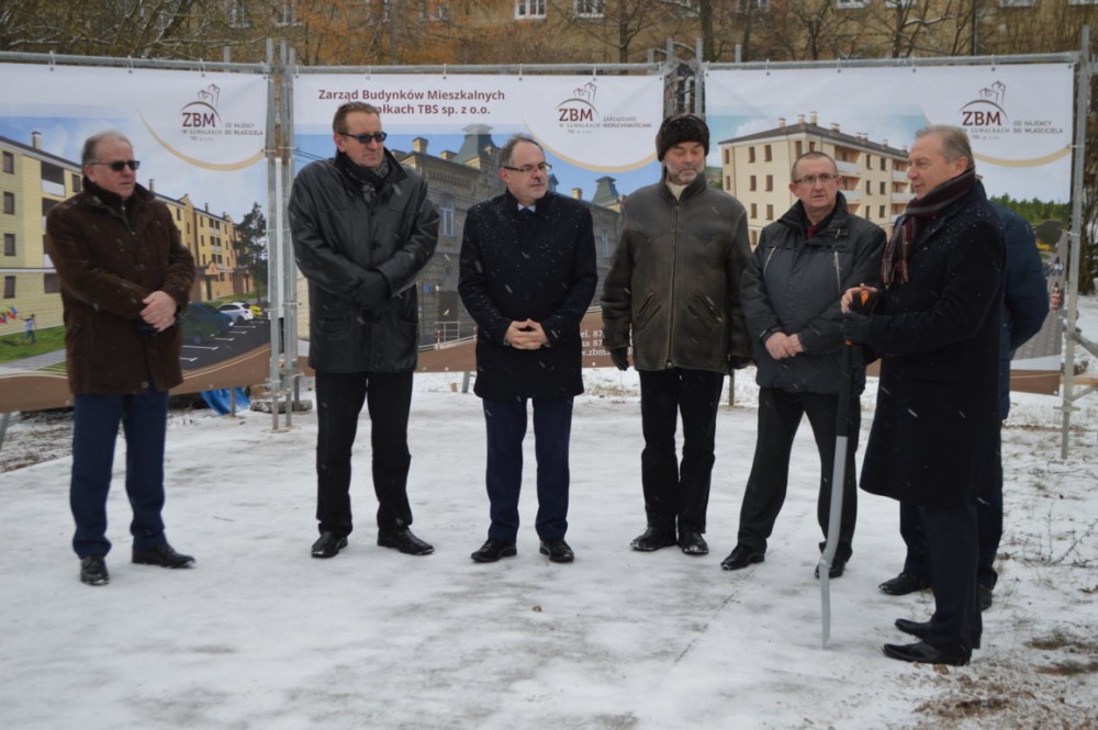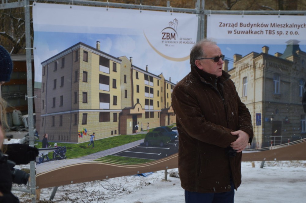 Budowa bloku ruszyÅ‚a z chwil a, kiedy prezydent SuwaÅ‚k CzesÅ‚aw Renkiewicz symbolicznie wrÄ™czyÅ‚ Å‚opatÄ™ Tadeuszowi Niedźwieckiemu, szefowi przedsiÄ™biorstwa B-Compleks, które wygraÅ‚o przetarg na wykonanie inwestycji wartoÅ›ci 7,3 mln zÅ‚. Prezydent poinformowaÅ‚, że w koÅ„cu przyszÅ‚ego roku może rozpocząć siÄ™ budowa drugiego bloku ZBM TBS z 30 mieszkaniami.