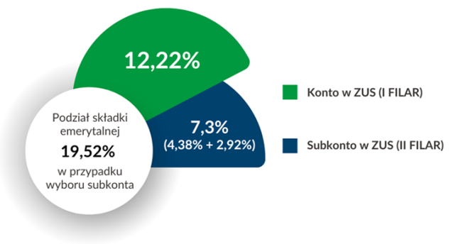 Graficzny podział składki emerytalnej na subkoncie i w OFE