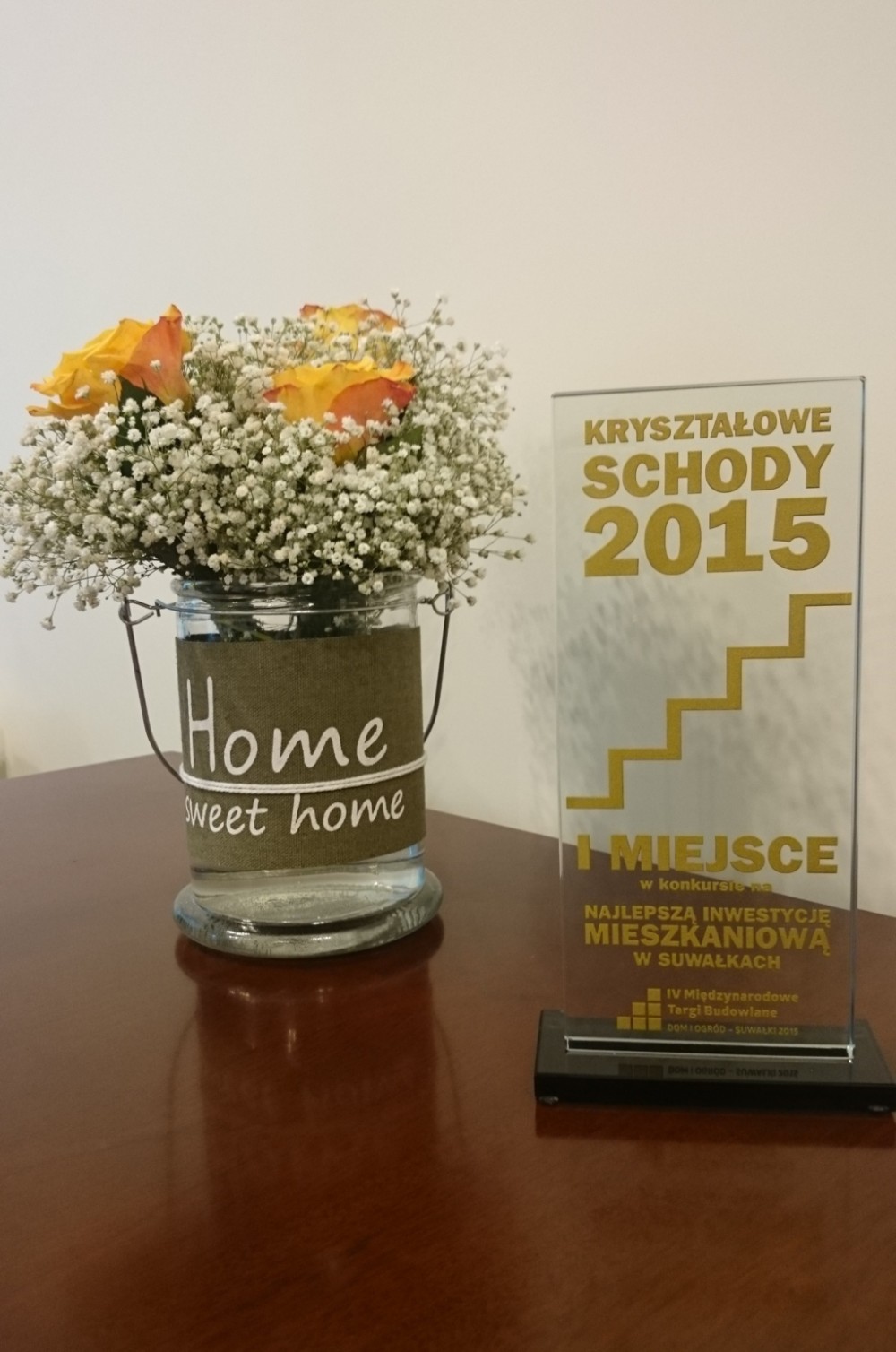 Inwestycja SÅ‚oneczne Tarasy na targach "Dom i ogród" otrzymaÅ‚a "KrysztaÅ‚owe Schody" jako najlepsza inwestycja mieszkaniowa w SuwaÅ‚kach.