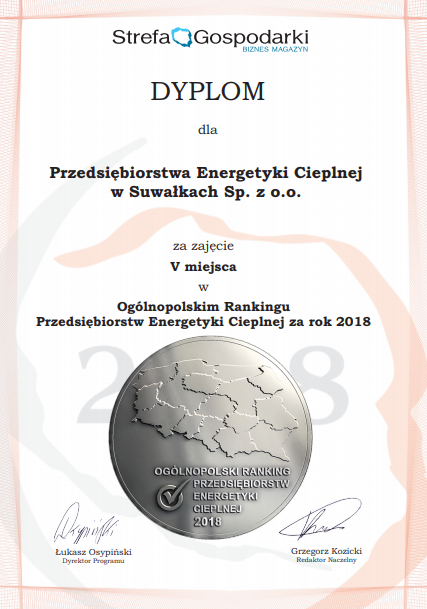 Suwalski PEC uplasowaÅ‚ siÄ™ na piÄ…tej pozycji, razem z taki przedsiÄ™biorstwami jak: ENEA CiepÅ‚o BiaÅ‚ystok i PEC Gniezno. W rankingu oceniano przede wszystkim poziom techniczny i technologiczny firmy, zaangażowanie w inwestycje, dziaÅ‚ania prorozwojowe, ekologiczne, stopieÅ„ pozyskiwania i wykorzystania Å›rodków unijnych, a także dziaÅ‚ania na rzecz spoÅ‚ecznoÅ›ci lokalnej, czy podnoszenie kwalifikacji zawodowych pracowników.