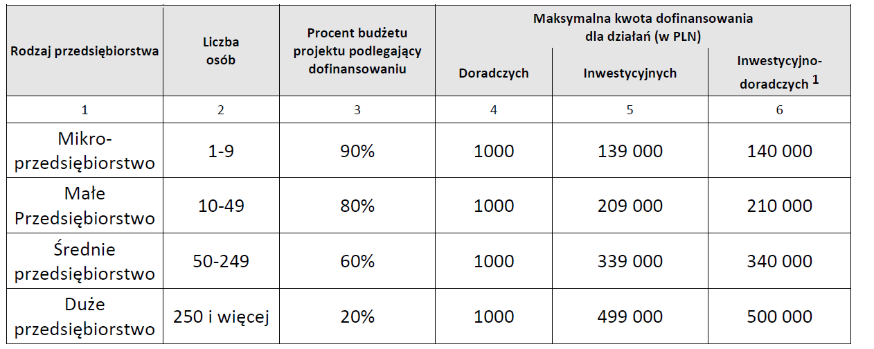 Najmniejsze podmioty, tj. zgÅ‚aszajÄ…ce do ubezpieczeÅ„ od 1 do 9 osób, mogÄ… zyskać dofinansowanie w wysokoÅ›ci 90% szacowanej wartoÅ›ci projektu. Wsparcie z ZUS może w tym wypadku wynieść 140 tys. zÅ‚. Wraz ze wzrostem liczby ubezpieczonych udziaÅ‚ procentowy dofinansowania maleje, przy czym dla najwiÄ™kszych przedsiÄ™biorstw wynosi 20% inwestycji. Maksymalna kwota, o którÄ… mogÄ… siÄ™ starać, wzrasta jednak wtedy aż do 500 tys. zÅ‚.