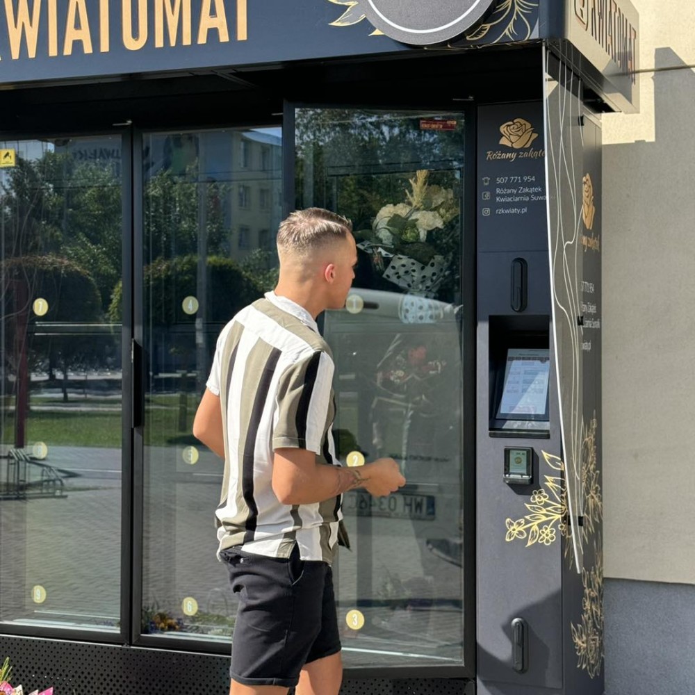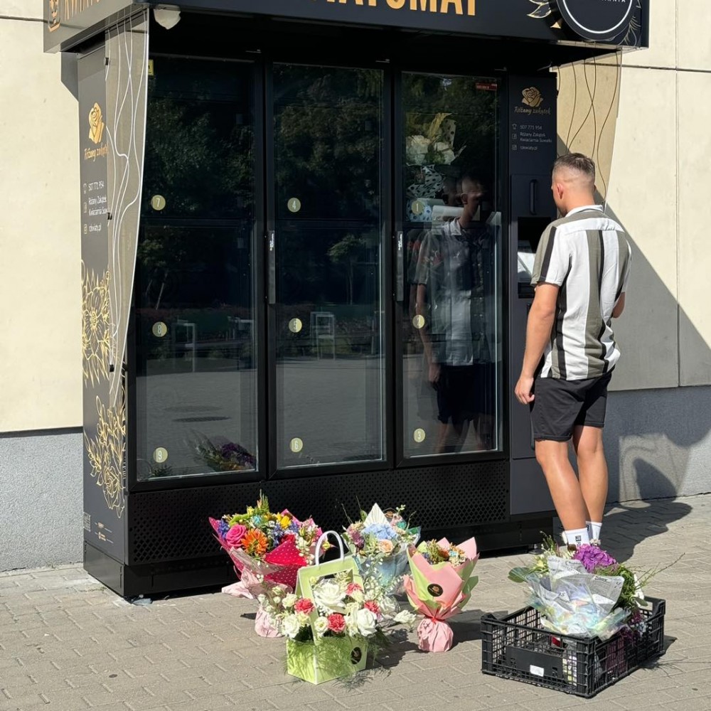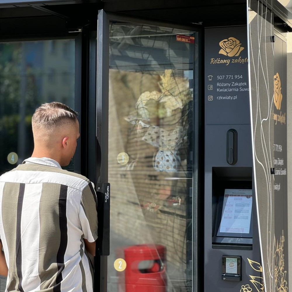 Jest pierwszy! Bardzo go wyczekiwałem, znajduje się na Wojska Polskiego 78, przy sklepie Chorten "Smętuś" – informował o wczorajszym montażu automatu z kwiatami Kamil Krawcewicz, właściciel Różanego Zakątka w Suwałkach.