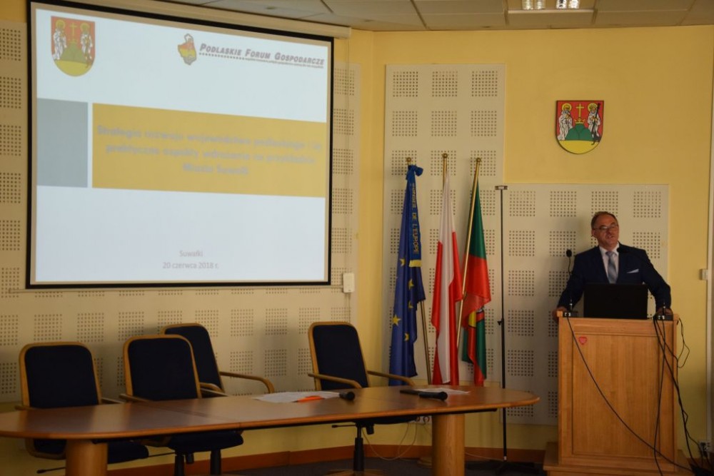 Tematem przewodnim spotkania była strategia rozwoju województwa podlaskiego i jej praktyczne aspekty wdrażania na przykładzie Miasta Suwałk.