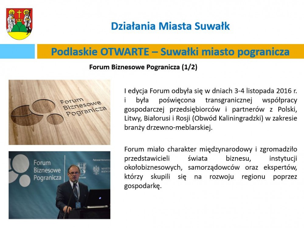 W trakcie spotkania Prezydent Suwałk zaprezentował to jak strategia rozwoju województwa podlaskiego jest wdrażana na przykładzie Miasta Suwałk.