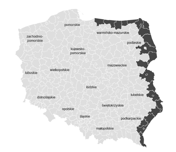 - W wyniku wprowadzonych zmian, przedsiębiorcy zainteresowani lokalizacją nowej inwestycji na obszarach powiatów: augustowskiego, bialskiego, bartoszyckiego, braniewskiego, bieszczadzkiego, białostockiego, chełmskiego, gołdapskiego, hajnowskiego, hrubieszowskiego, jarosławskiego kętrzyńskiego, lubaczowskiego, przemyskiego, sejneńskiego, siemiatyckiego sokólskiego, suwalskiego, tomaszowskiego, węgorzewskiego oraz włodawskiego, a także na terenach miast Biała Podlaska, Chełm, Przemyśl, Suwałki będą korzystali z preferencyjnych warunków - głosi komunikat Ministerstwa Rozwoju i Technologii.