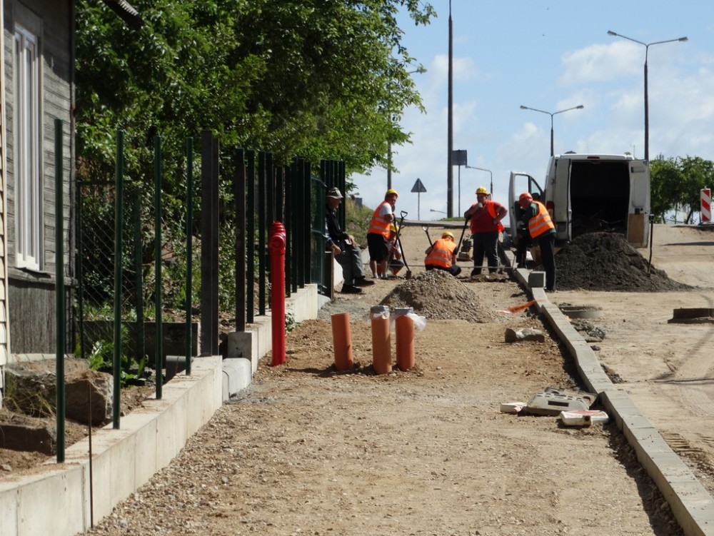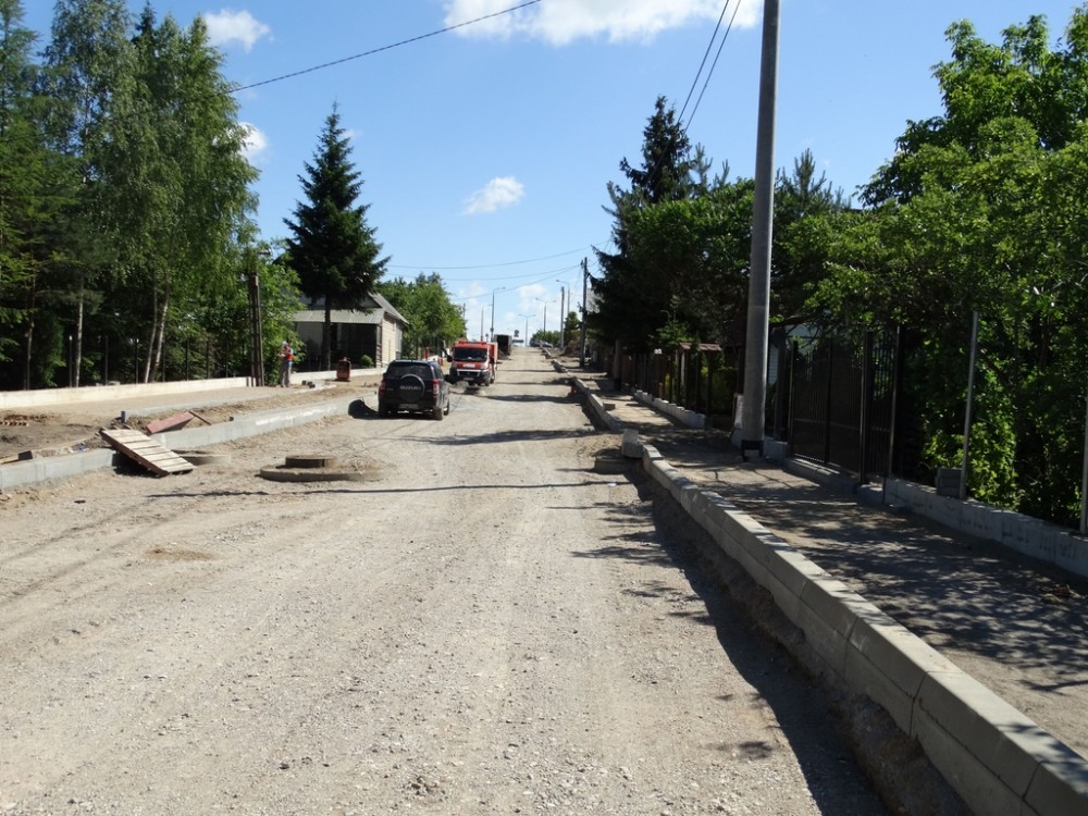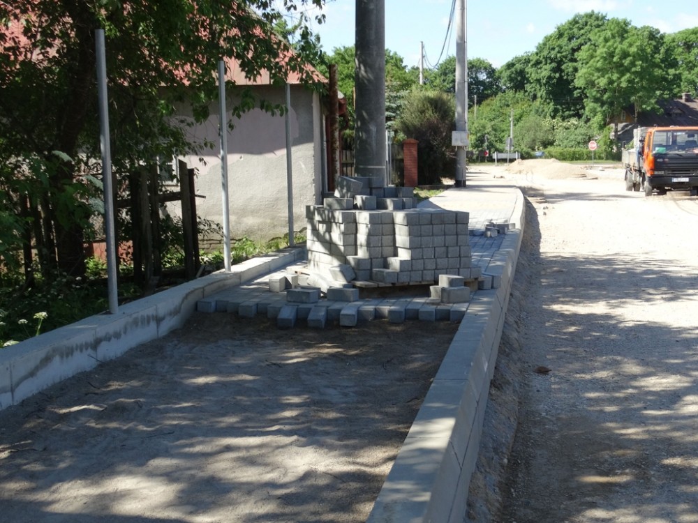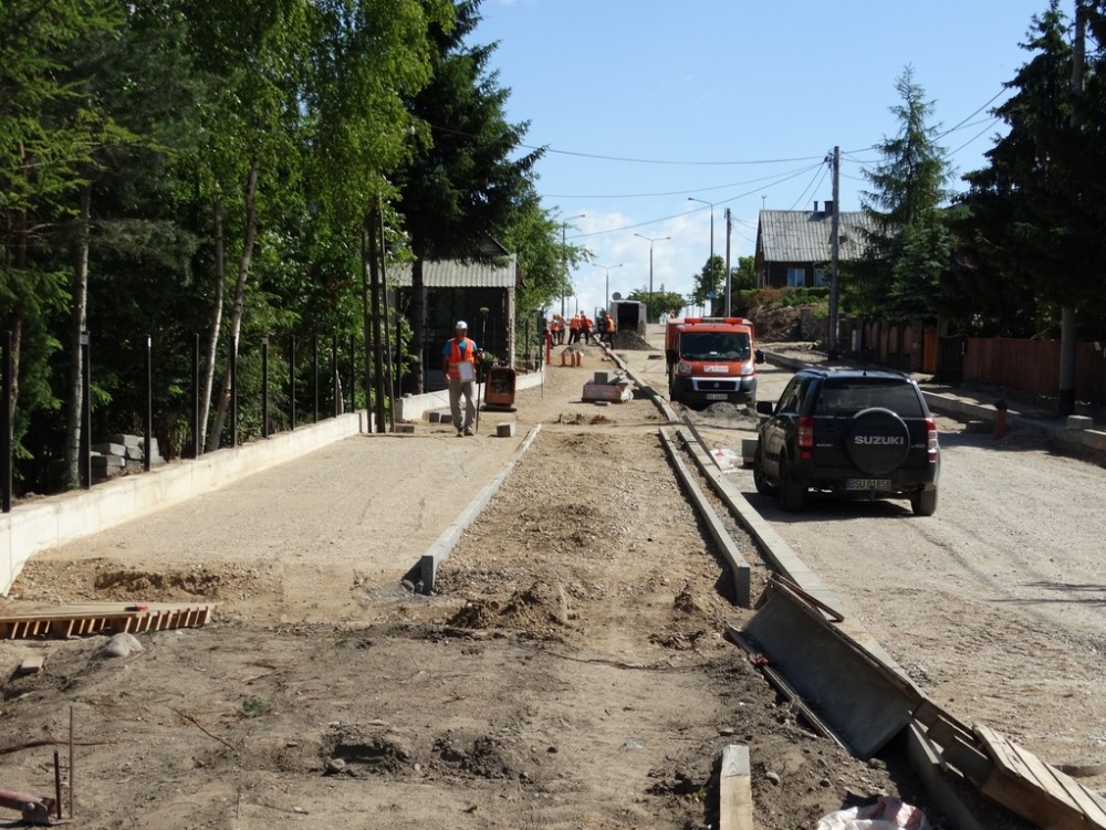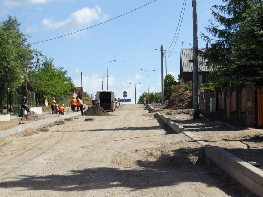 Obecnie trwają prace związane z przygotowywaniem podłoża do układania chodników i jezdni. Budowlańcy murują murki oporowe odgradzające posesje od ulicy. Wcześniej robotnicy zajęli się ułożeniem kanalizacji deszczowej i sanitarnej oraz siecią telekomunikacyjną.