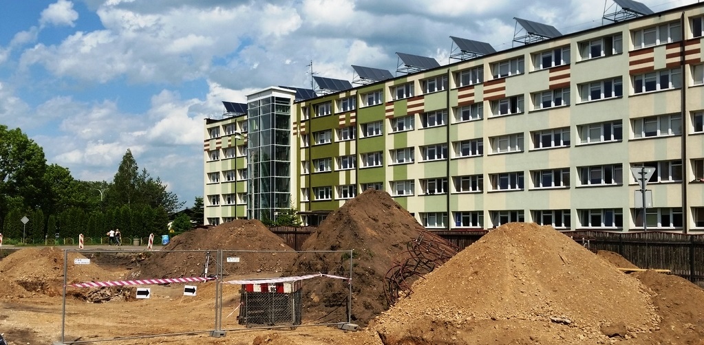 Rozpoczęła się przebudowa ul. Szkolnej. Na razie obyło się bez utrudnień dla kierowców. Dotychczas prowadzone są prace wyłącznie poza jezdnią. Na placu pojawiły się koparki i ciężarówki. Trwają prace przy montażu instalacji kanalizacyjnych.