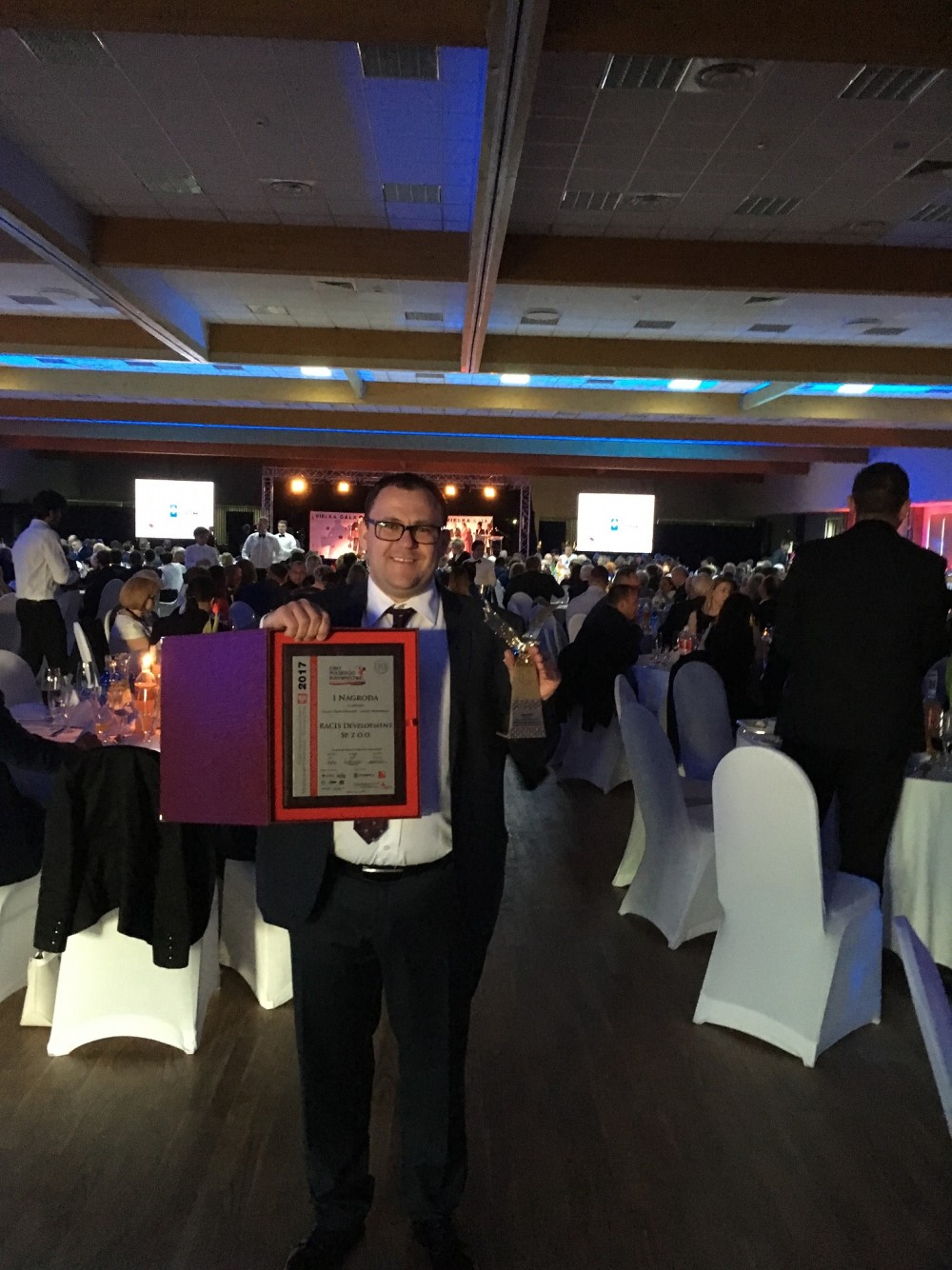 Prezes Szymon Racis dedykuje nagrodę wszystkim pracownikom, współpracownikom, a przede wszystkim klientom Racis Development.