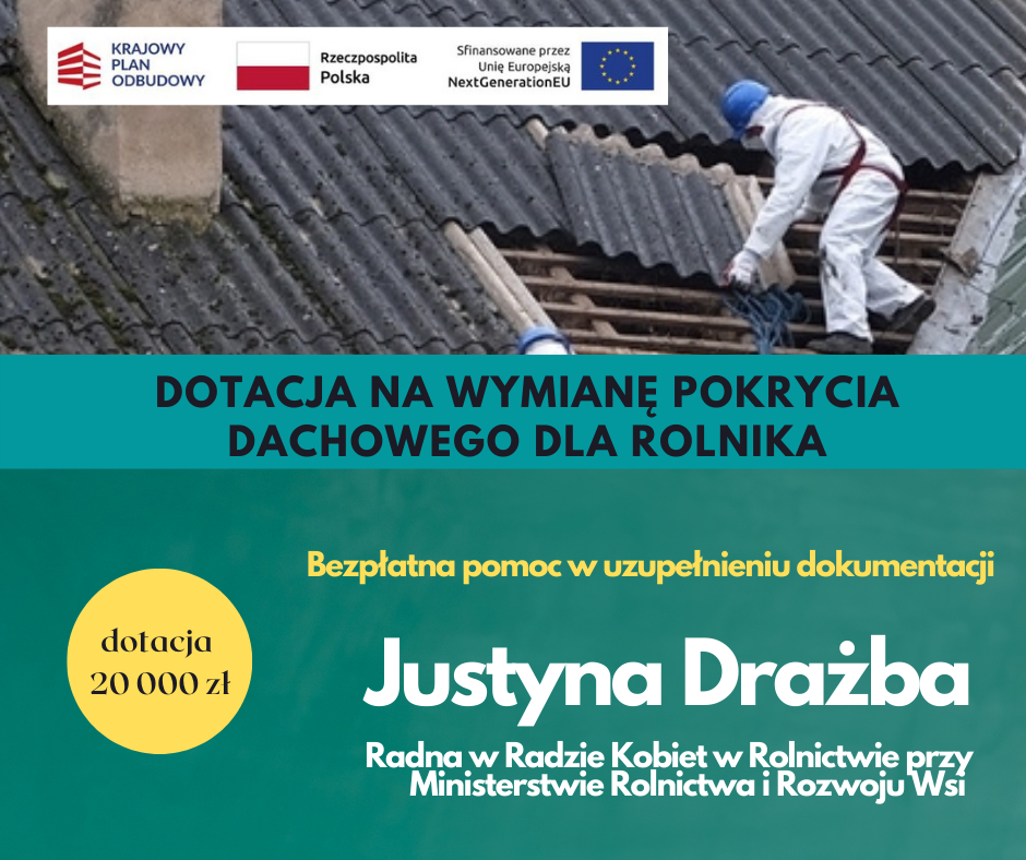 Agencja Restrukturyzacji i Modernizacji Rolnictwa ogłosiła, że rolnicy mogą ubiegać się o pomoc na na wymianę pokrycia dachowego zawierającego azbest. Nabór wniosków o środki z Krajowego Planu Odbudowy i Zwiększania Odporności potrwa tylko do 15 listopada 2022 r.