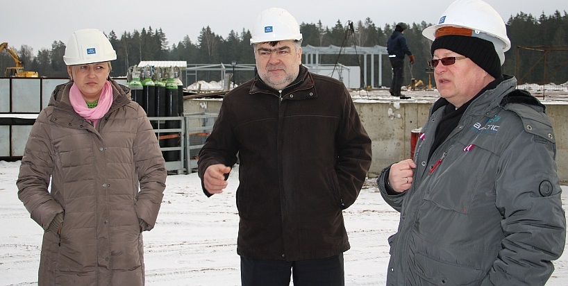 Na górnym zdjęciu: mer rejonu Łoździeje, Artūras Margelis, (w środku) podczas wizytacji budowy terminalu w grudniu 2016 roku. Fot. Samorząd Łoździej.