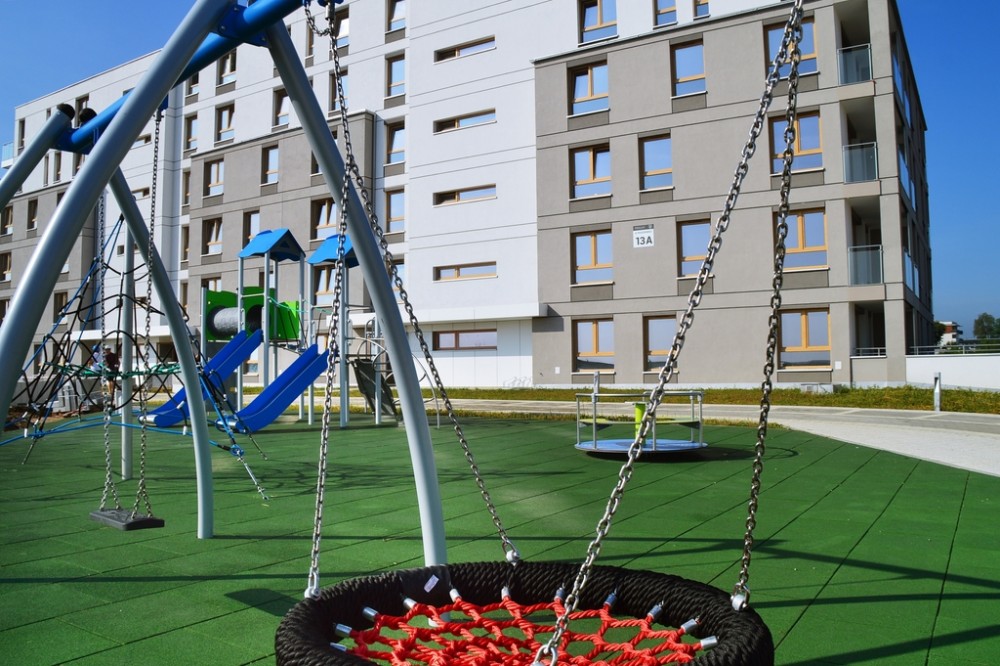 - zaaranżowana zieleń na osiedlu (m. in. trawa z rolki)