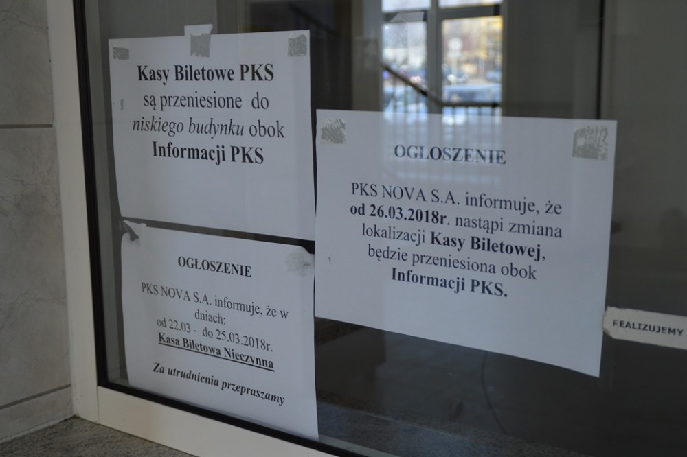Po ponad 20 latach zamknięte zostały kasy w hallu dworca PKS przy ul. Utrata. PKS Nova sprzedaje bilety w przybudówce, gdzie urządza także poczekalnię i toalety dla pasażerów.
