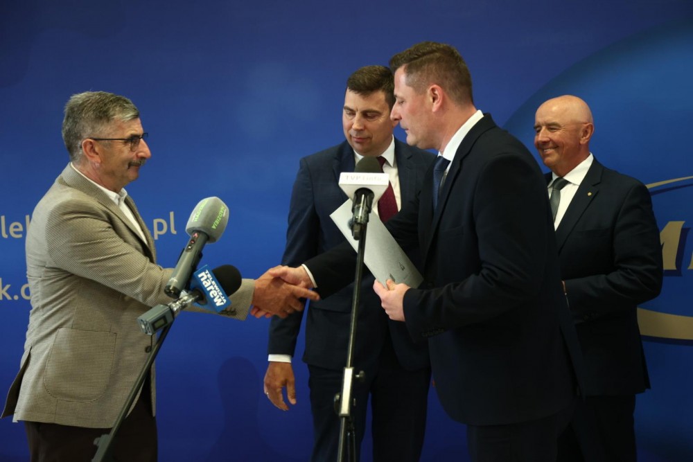 Decyzję o wsparciu dla inwestycji o wartości 400 mln zł prezesowi Mlekpolu Tadeuszowi Mroczkowskiemu przekazali w poniedziałek, 7 lipca Minister Rozwoju i Technologii Krzysztof Paszyk i prezes Suwalskiej Specjalnej Strefy Ekonomicznej Cezary Cieślukowski.