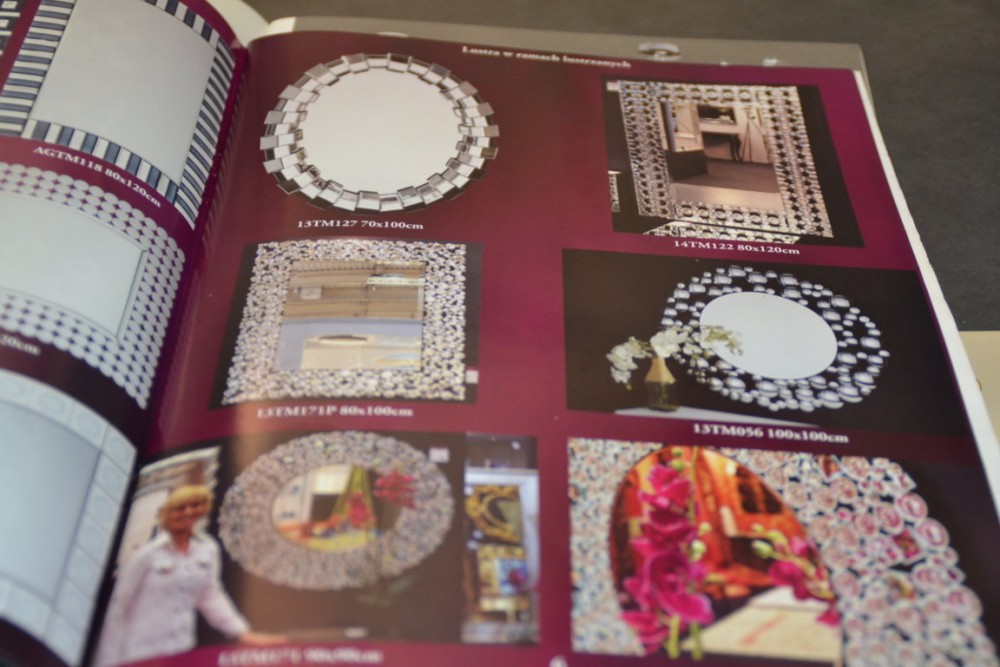 Oprócz tych, które można podziwiać na wystawie, paÅ„stwo Poczobut mogÄ… sprzedać dowolne lustro ze specjalnego katalogu. Podobnie jest z lampami czy żyrandolami.