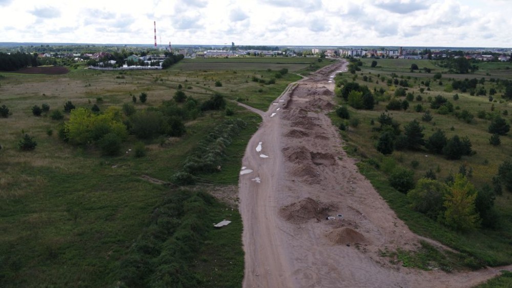 By pokazać jak duży zakres robót pozostaje do wykonania prezentujemy kilka zdjęć wykonanych dronem na których widać cały odcinek drogi, która powstanie do połowy przyszłego roku.