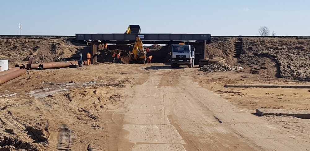 Po posadowieniu stalowej konstrukcji i testach obciążeniowych, które przeprowadzono na przeÅ‚omie lutego i marca, drogowcy mogÄ… przystÄ…pić do kolejnego etapu robót. Robotnicy przygotowali szalunki pod elementy betonowe, zabezpieczyli boki skarpy i zaczÄ™li wybierać ziemiÄ™ spod torowiska. Prace sÄ… prowadzone w ten sposób aby nie zakÅ‚ócić rozkÅ‚adu połączeÅ„ kolejowych.